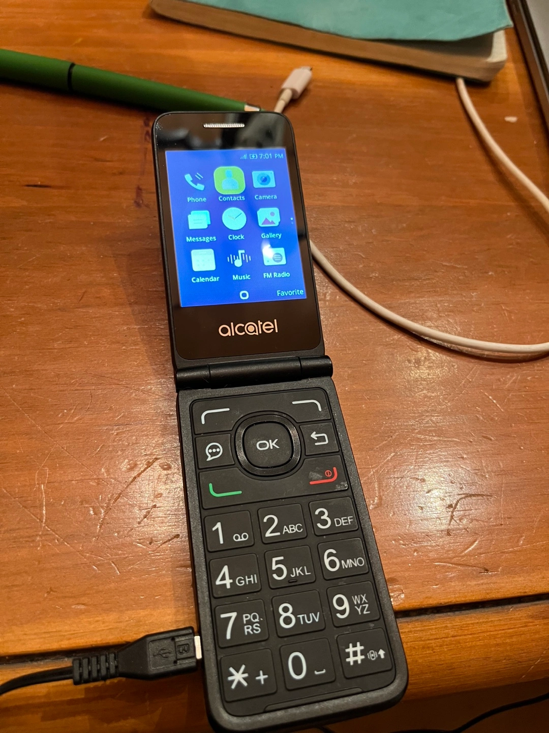 Pre-owned Alcatel Go Flip 4044V. Features a flip design, basic keypad, and small external screen. Includes standard features like phone, contacts, messaging, camera, and more. Excellent for basic communication.