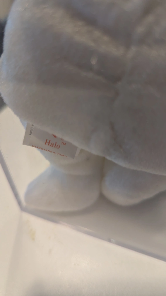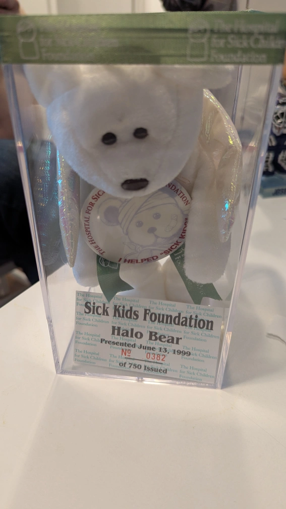Collectible Ty Beanie Baby. Halo bear. Numbered edition. Part of the SickKids Foundation collection. Comes in original plastic case.
