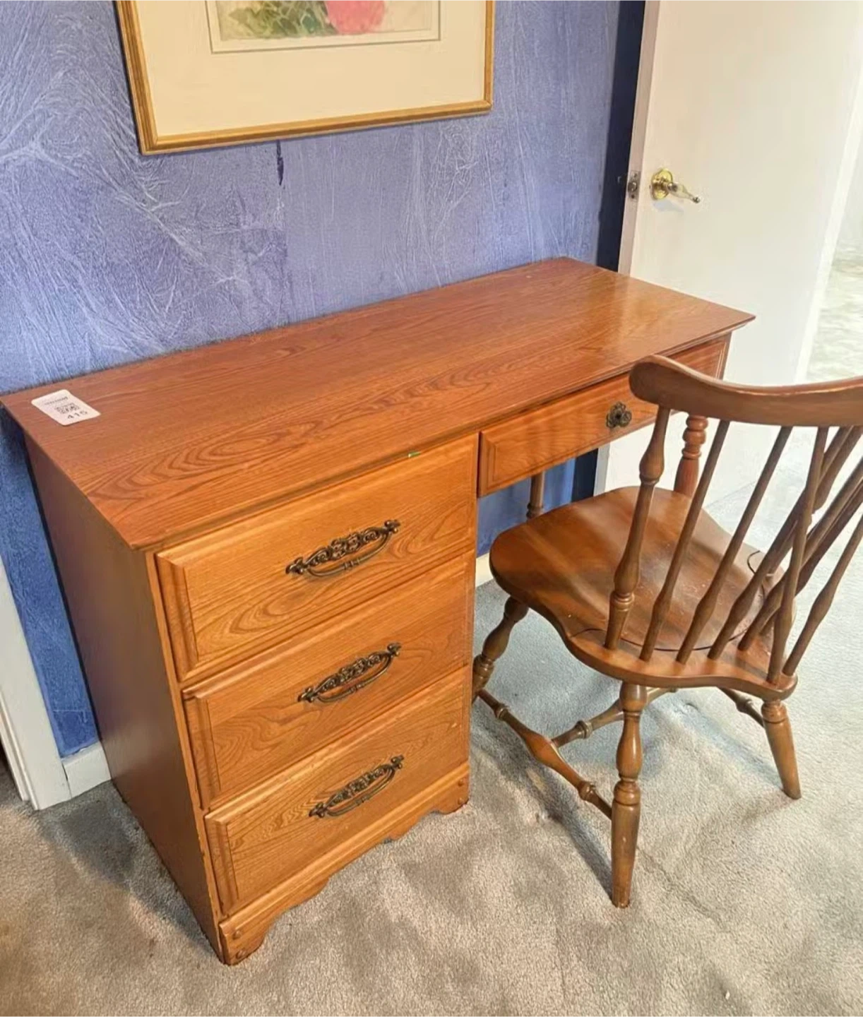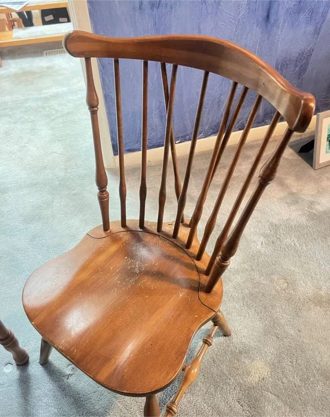 Selling a wooden spindle back chair. It has a classic design and would be a great addition to any home. There are some signs of wear on the seat.