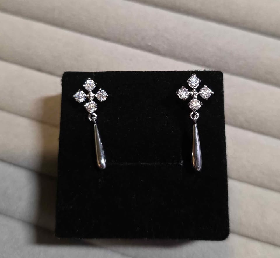 New Moissanite Silver Cross Stud Earrings (9H1F)
