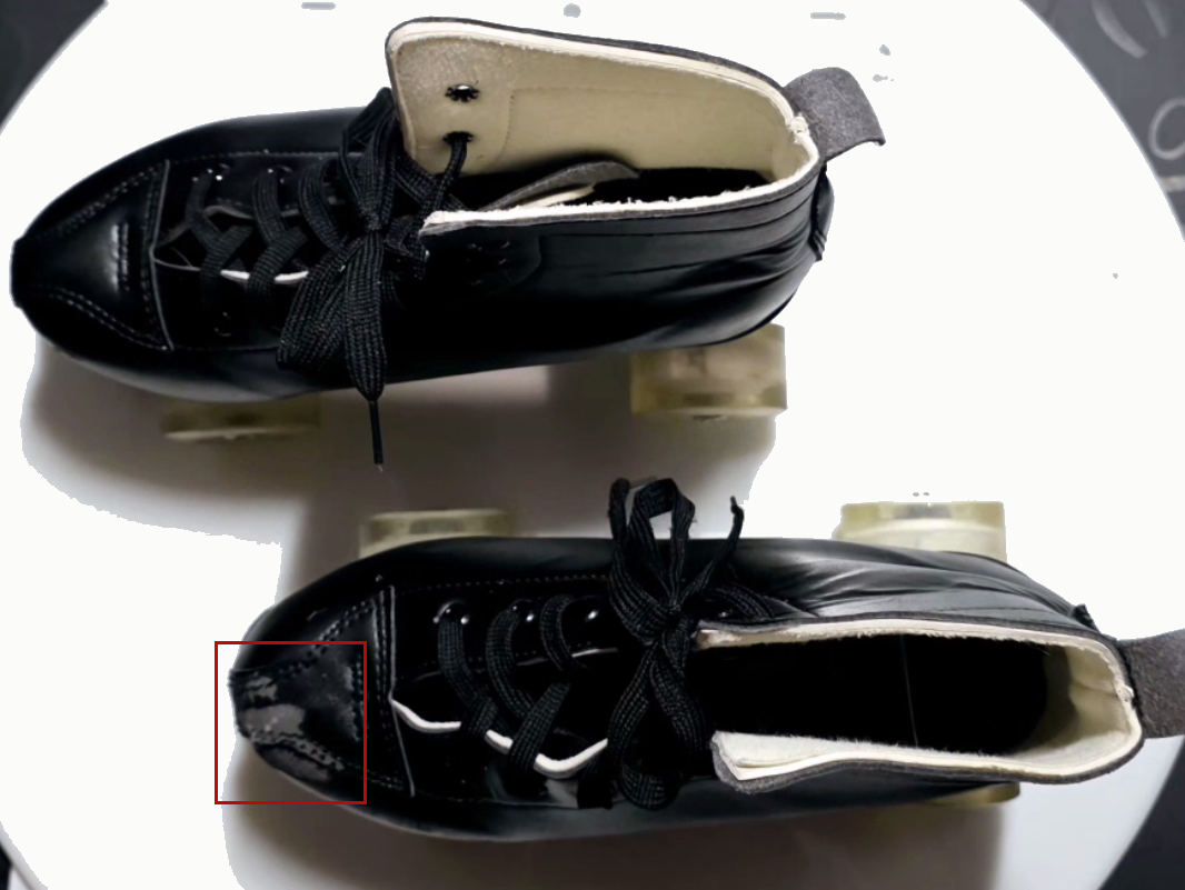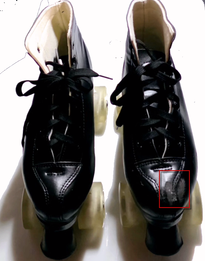 Only worn a couple of times. There is a scuff on the right boot (refer to the pictures) due to a fall however it is basically new and the lights on the wheels fully work.