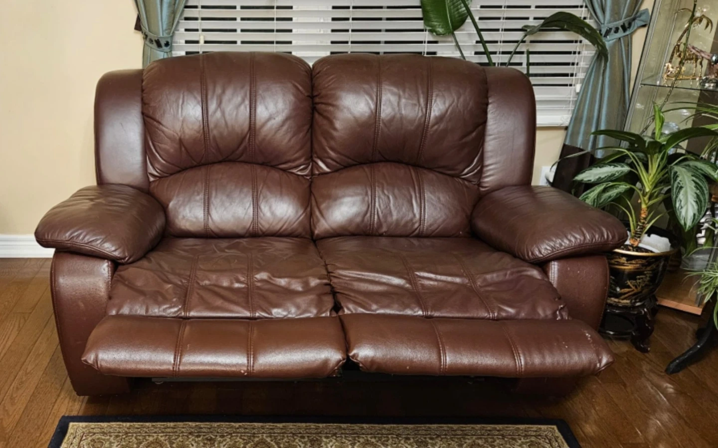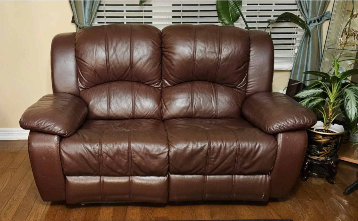 Genuine leather reclining very comfortable love seat two seater sofa.