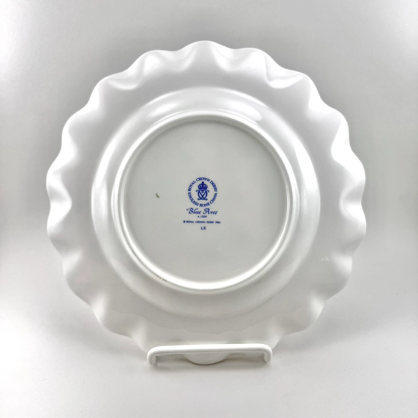 Royal Crown Derby (made in England) fine bone china scalloped 9” plate in the Blue Aves pattern. No chips, cracks, crazing or gold loss — high ping/ring. Price is firm — will not be reduced further