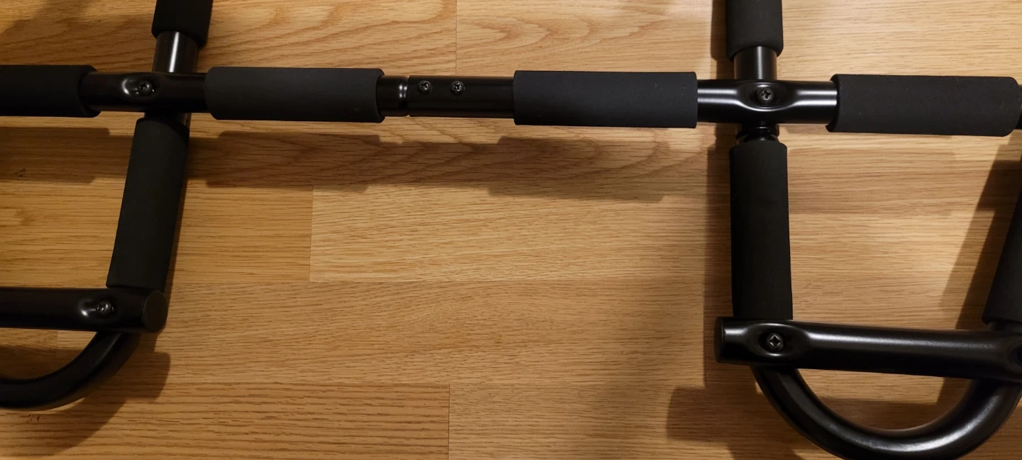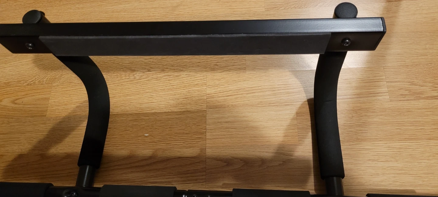 Doorway pull-up and dip bar with multiple grip positions. Heavy-duty steel construction with padded handles for comfort. Great for pull-ups, dips, leg raises, and upper-body workouts. Never used, in like-new condition. Did not have a place to mount it. Hardware not included unless shown.