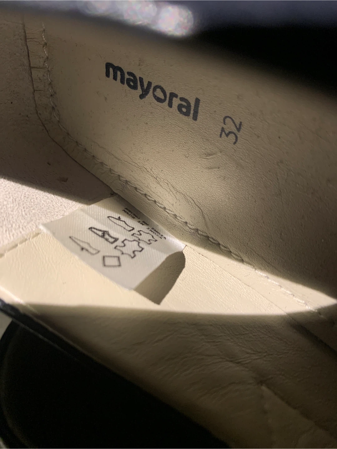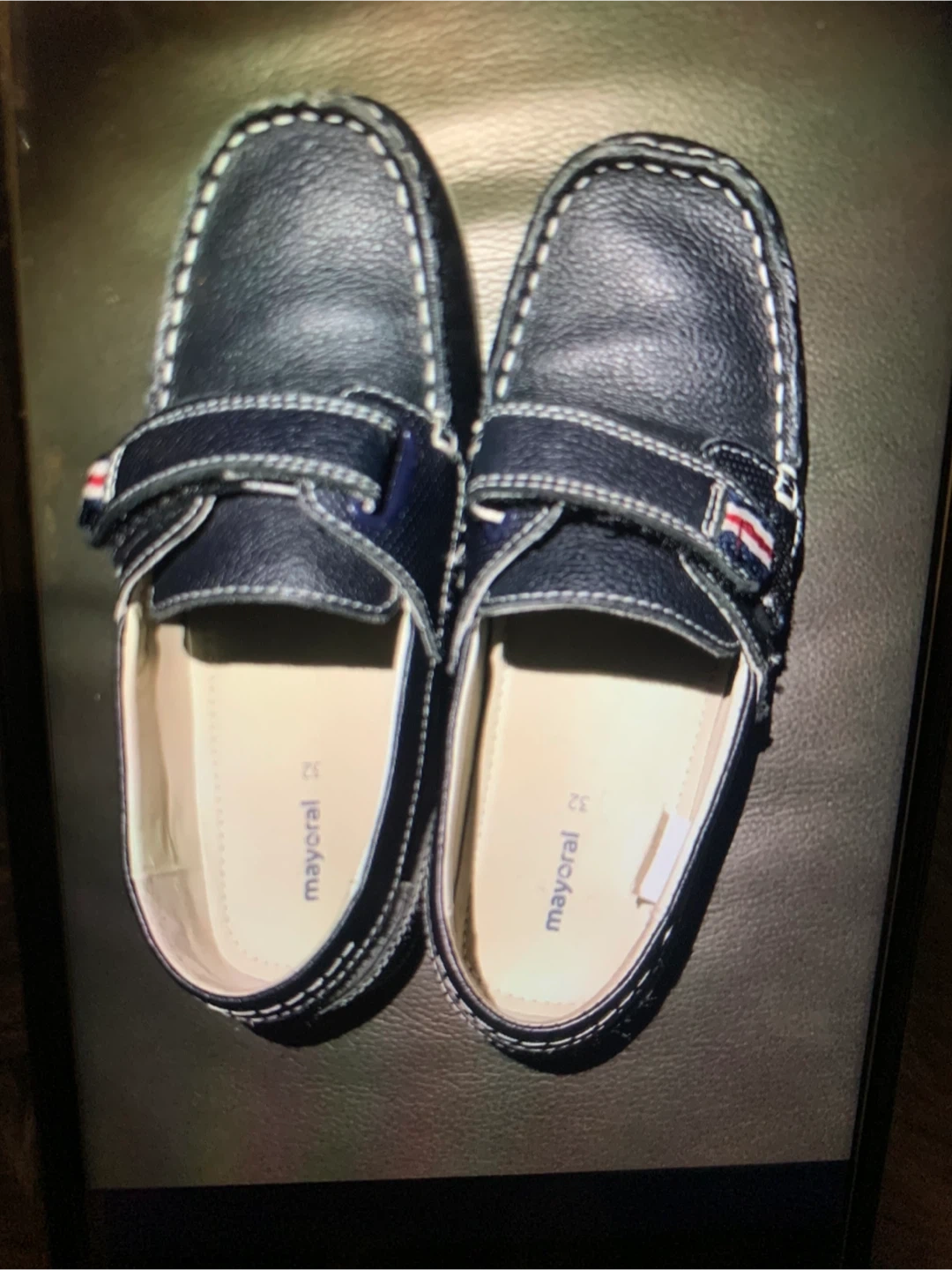 Mayoral navy blue kids loafer shoes with velcro straps for comfort.Made of real leather-inside & upper ,with white stitching detail. Size 32.