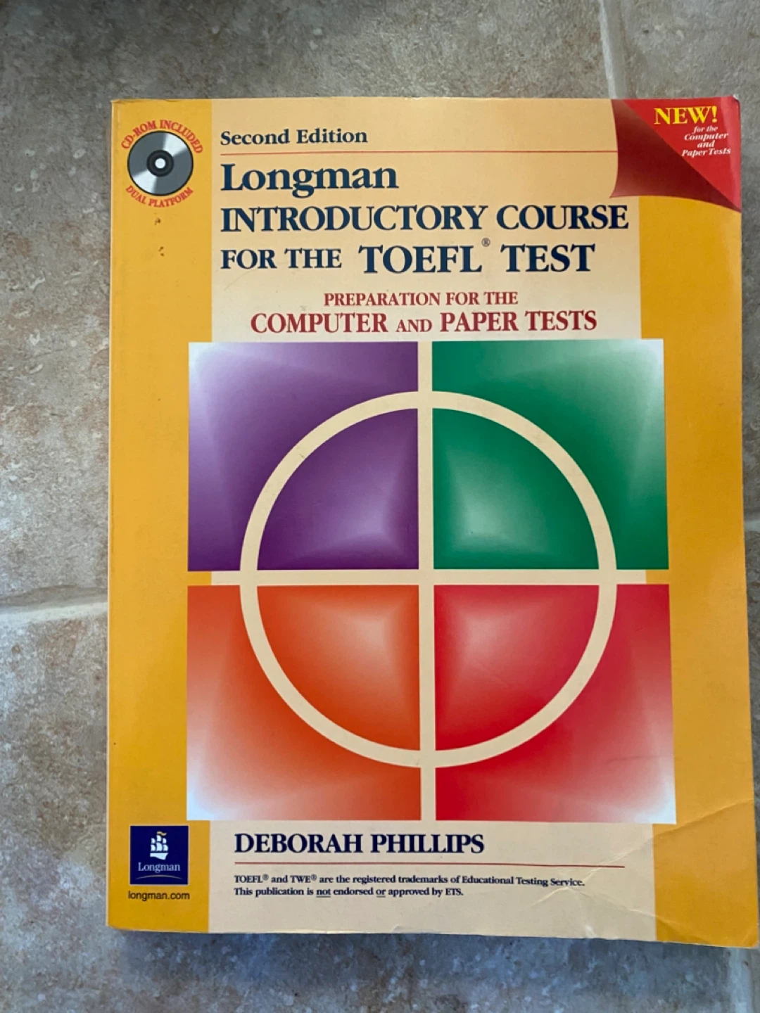 Selling a Longman Introductory Course for the TOEFL Test, Second Edition. It comes with a CD-ROM included, for both computer and paper tests. Great for anyone preparing for the TOEFL!