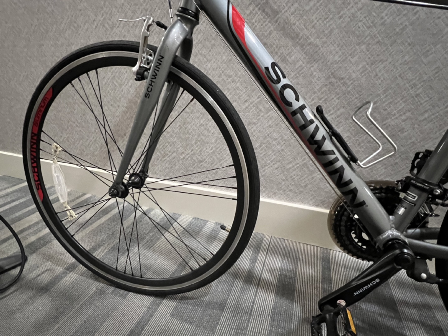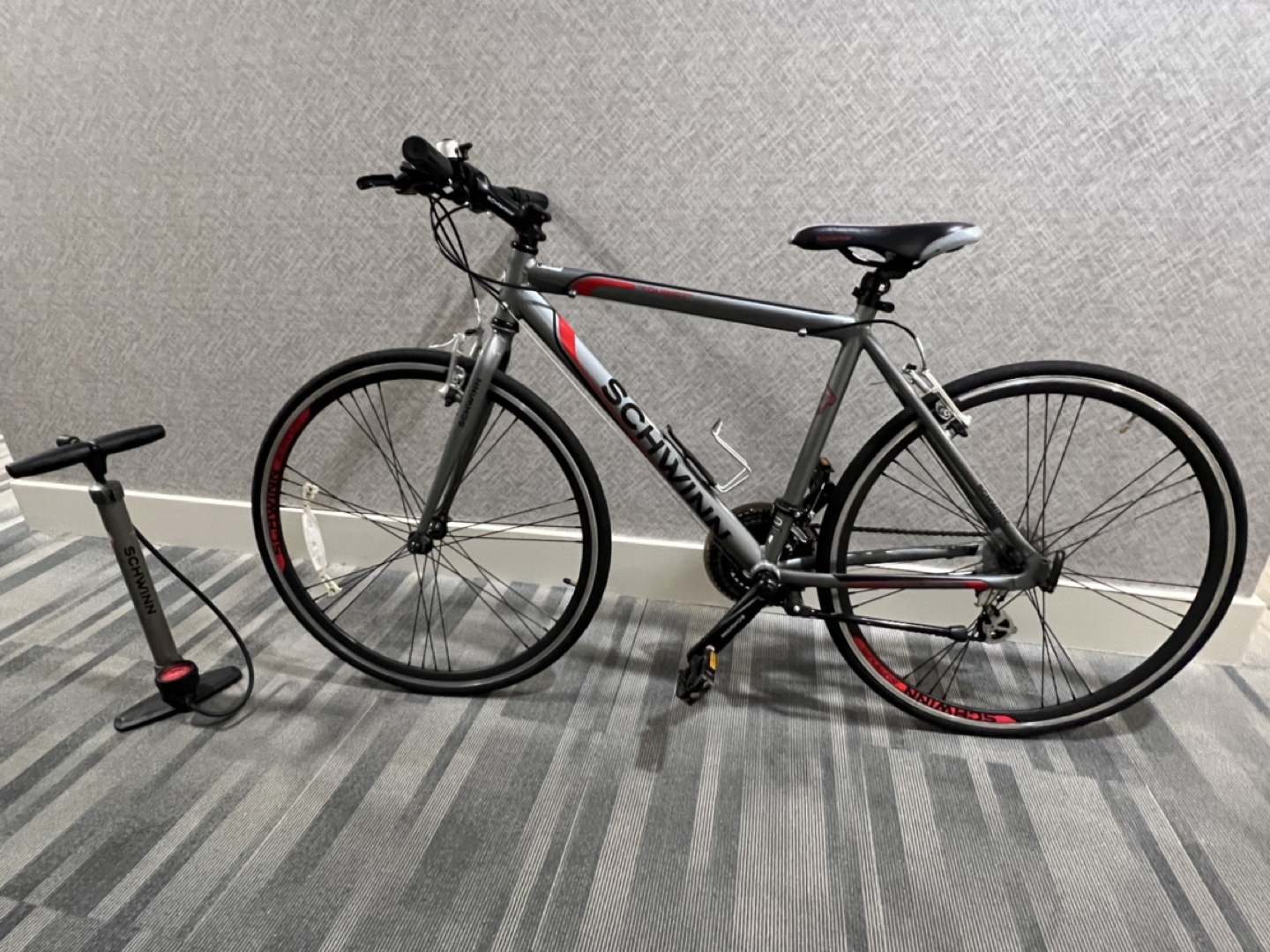 10Up for your consideration is this like new professionally tuned Schwinn Tourist Hybrid Bike. Bike is tuned by Dream Cyclery on Queens Quay. The bike is in great condition - very clean and runs smoothly. Lots of life in the brake pads and tires. Moving so need to sell. Bike upgrades and replacements include: left brake upgraded V-brake and back wheel tube replaced with Presta valve tube. Bike was cared for and stored indoors all its life. Featuring - Light Aluminum Frame - Medium bike frame size accommodates most riders heights - Highly reliable Shimano Altus drive train / gear set - Upgraded left brake set V-brakes - Comes with color matching Schwinn bike pump with adapters for Presta and Schrader valves (extra $20) - Compact bell for safety - Front LED light with battery included and Back red LED light with battery included (extra $20 for both lights) Please come check it out in-person at Lakeshore and Bathurst. Looks even better in-person. Local pick up. Thanks for looking and have a great day.
