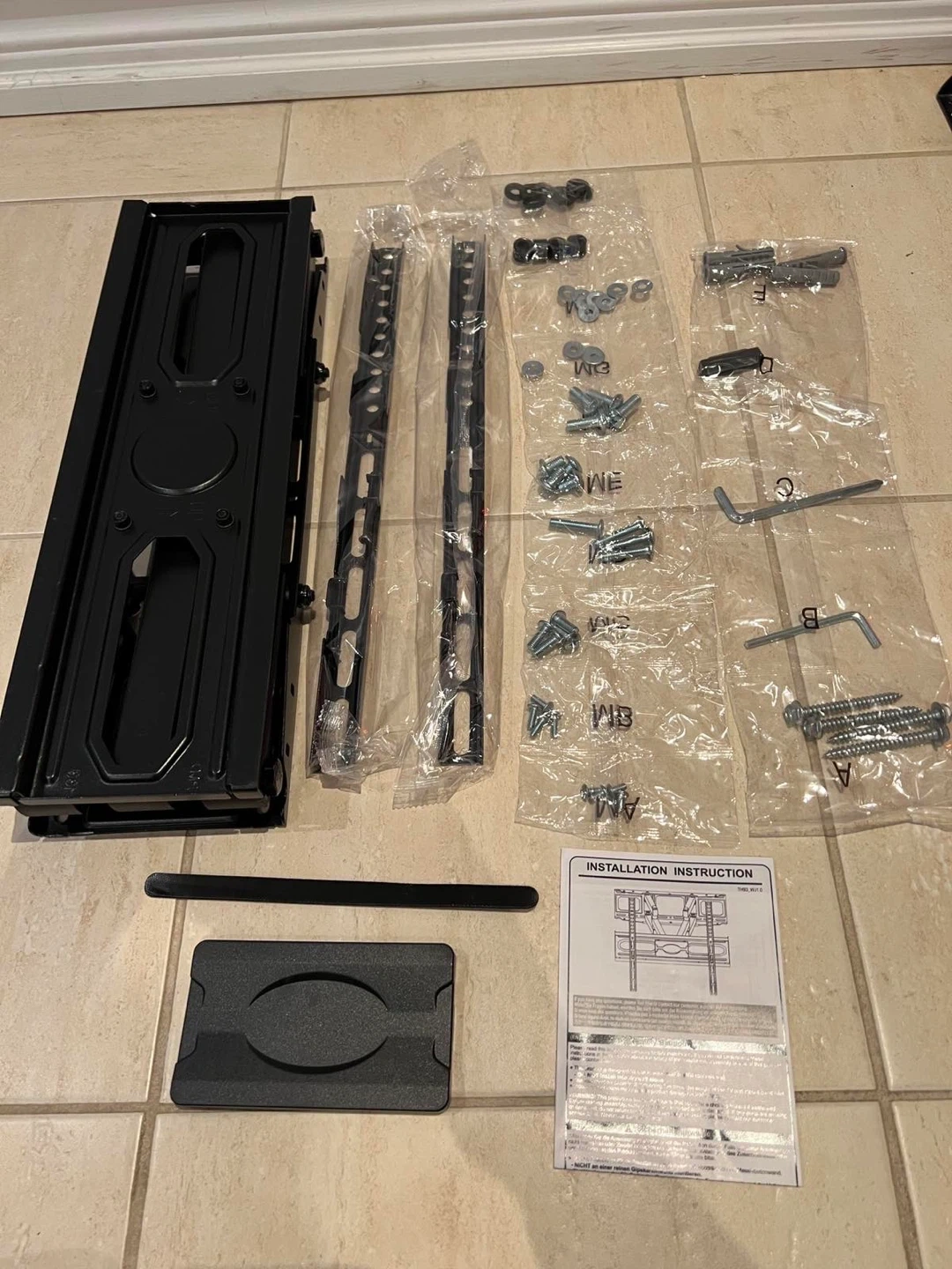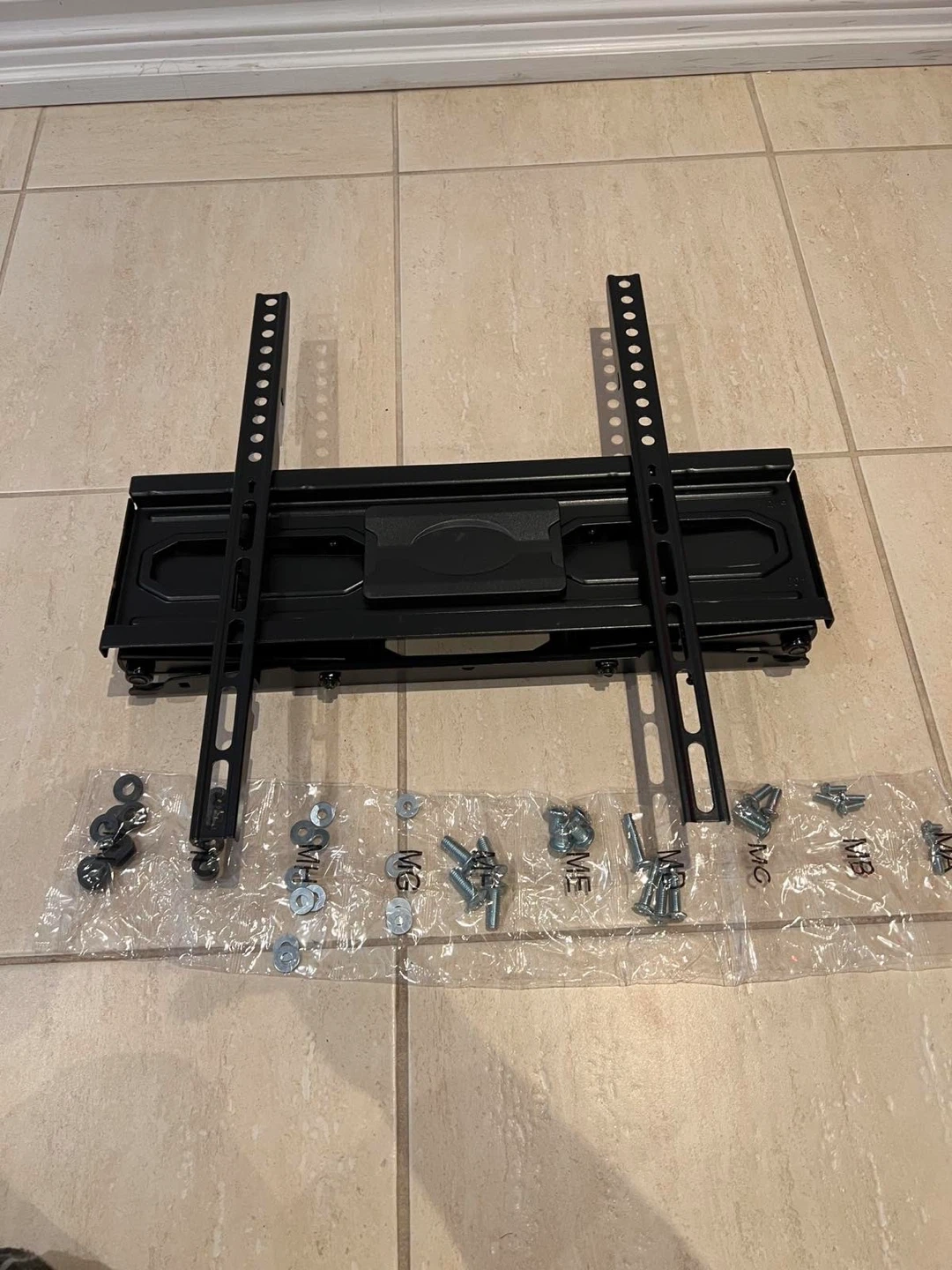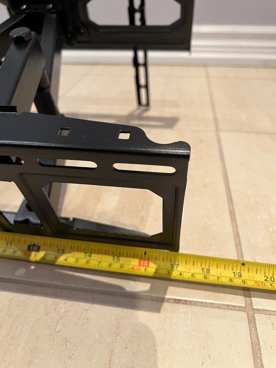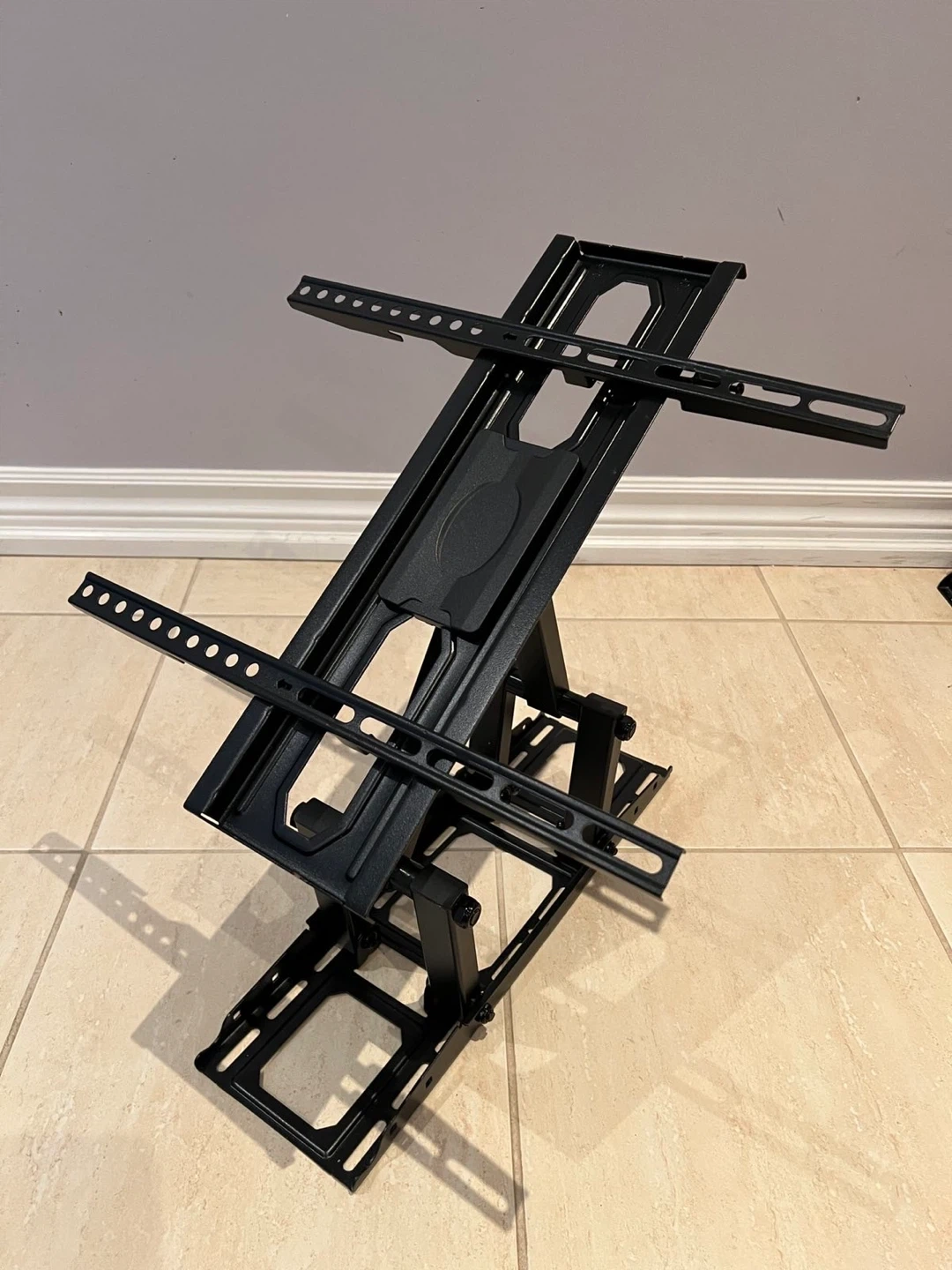This is a black articulating TV wall mount. It's made of metal and offers adjustable viewing angles. It's suitable for mounting a television on a wall.
