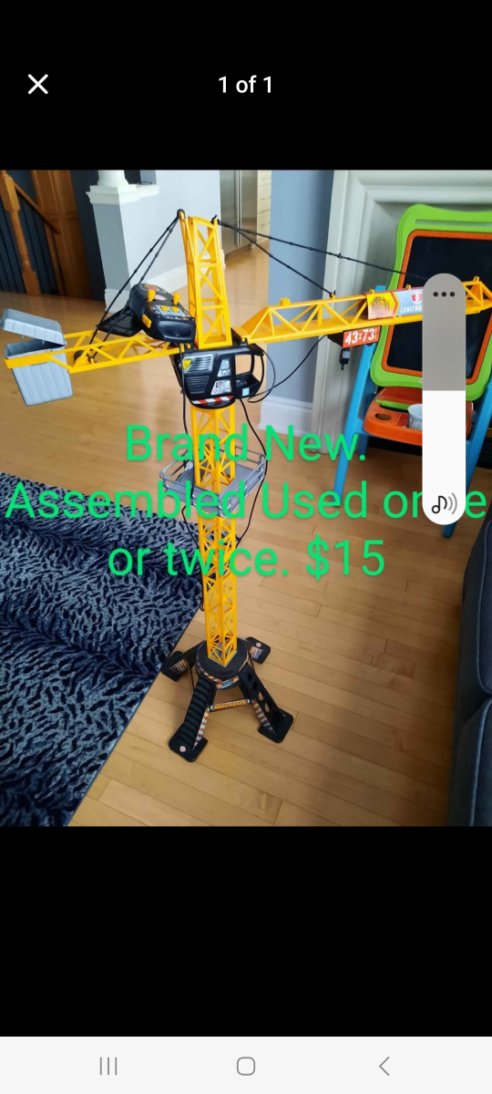 Toy crane, assembled and used only once or twice. It's in great condition and ready for a new home!