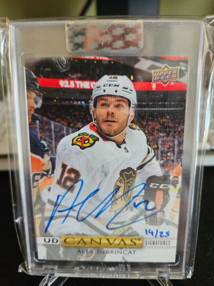 Selling an Alex DeBrincat UD Canvas Signature hockey card. It's numbered 14/25 and in great condition!