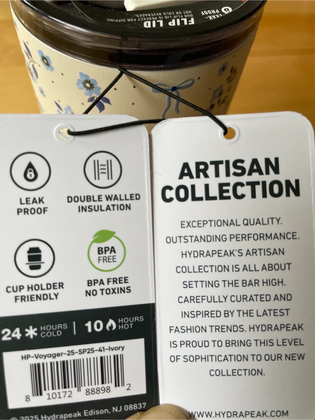 Hydrapeak Artisan Collection tumbler has a beautiful floral design and comes with both a straw lid and a flip lid. It's leak-proof and features double-walled insulation to keep your drinks cold for up to 24 hours or hot for up to 10 hours! It's also BPA free and fits in most cup holders