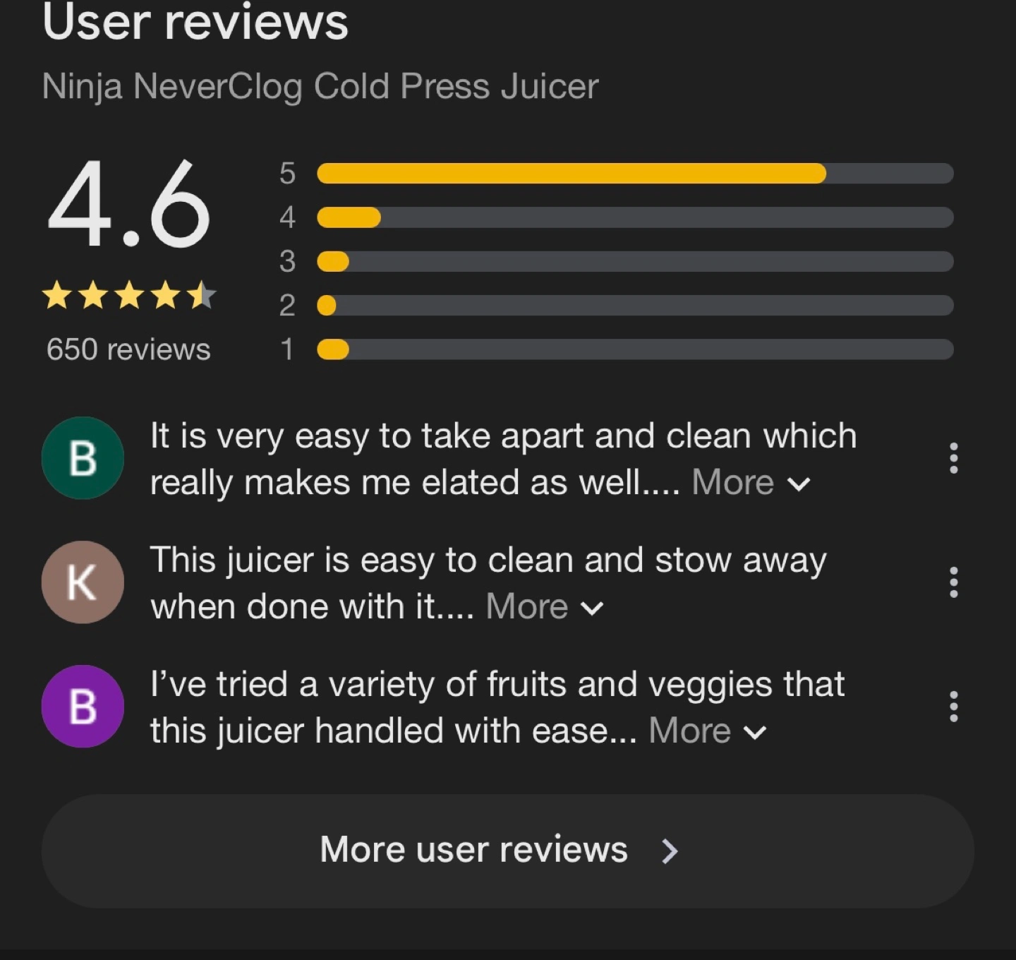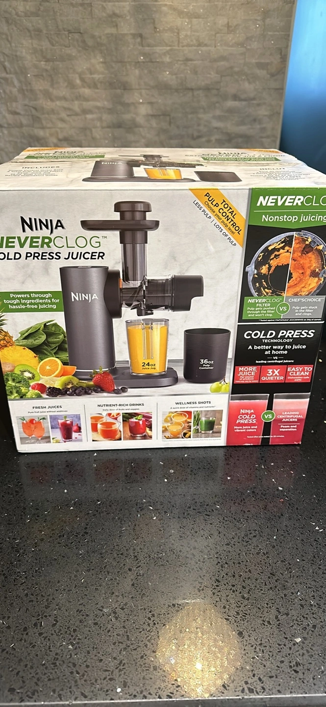 Ninja NeverClog Cold Press Juicer. Powerful juicer. Easy to clean. Makes fresh juices, nutrient-rich drinks, and wellness shots.