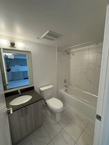 This beautiful unit features 9 ft ceilings, and the open-concept kitchen is equipped with quartz countertops and stainless steel appliances, all overlooking a sun-filled living and dining area.