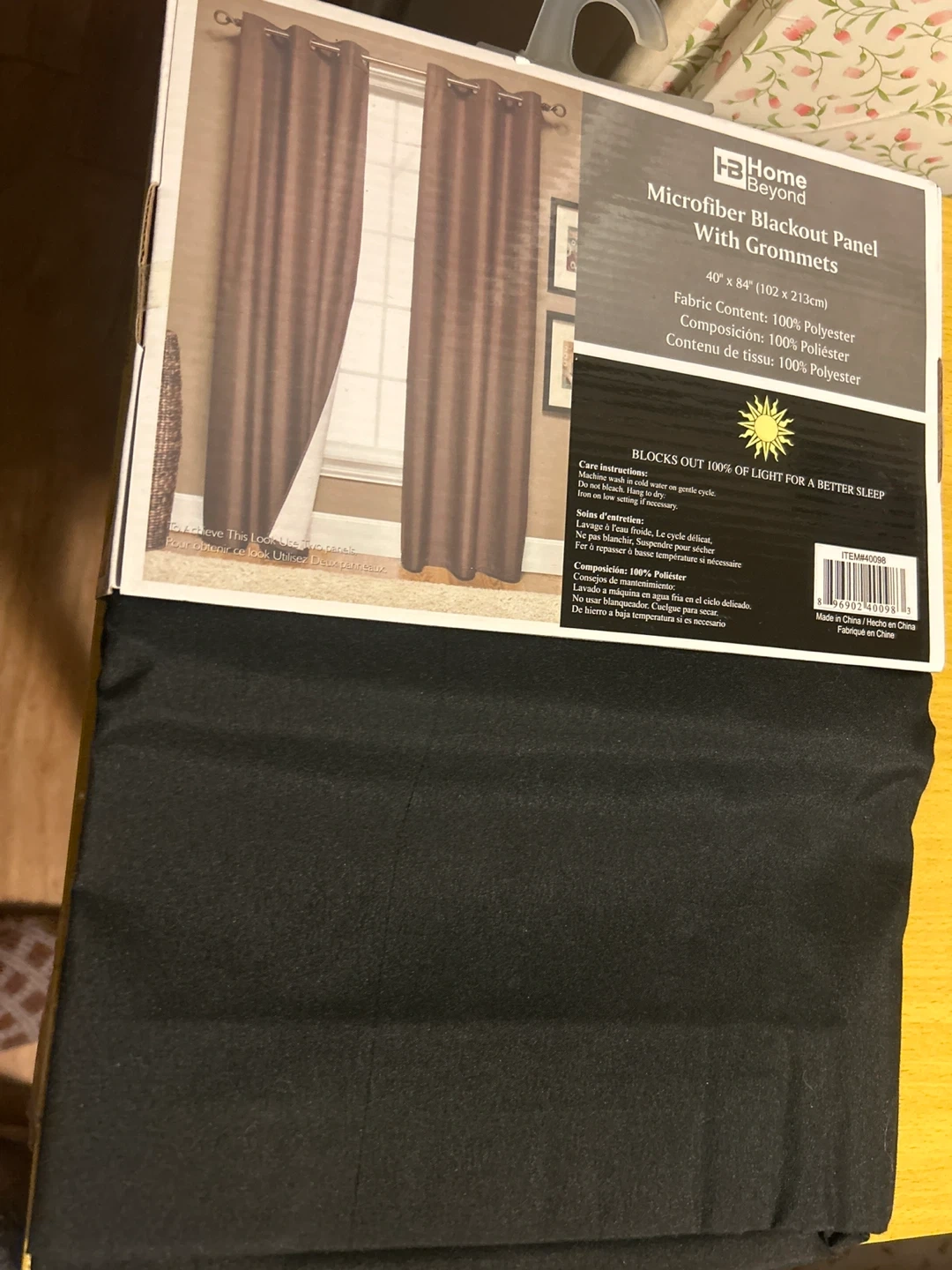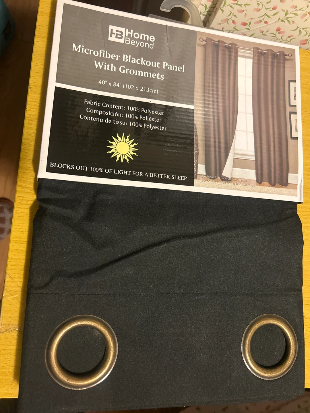 This is a Home Beyond microfiber blackout curtain panel. It's 40" x 84" and made of 100% polyester. Blocks out 100% of light for a better sleep! It's ideal for bedrooms or media rooms where light control is important.