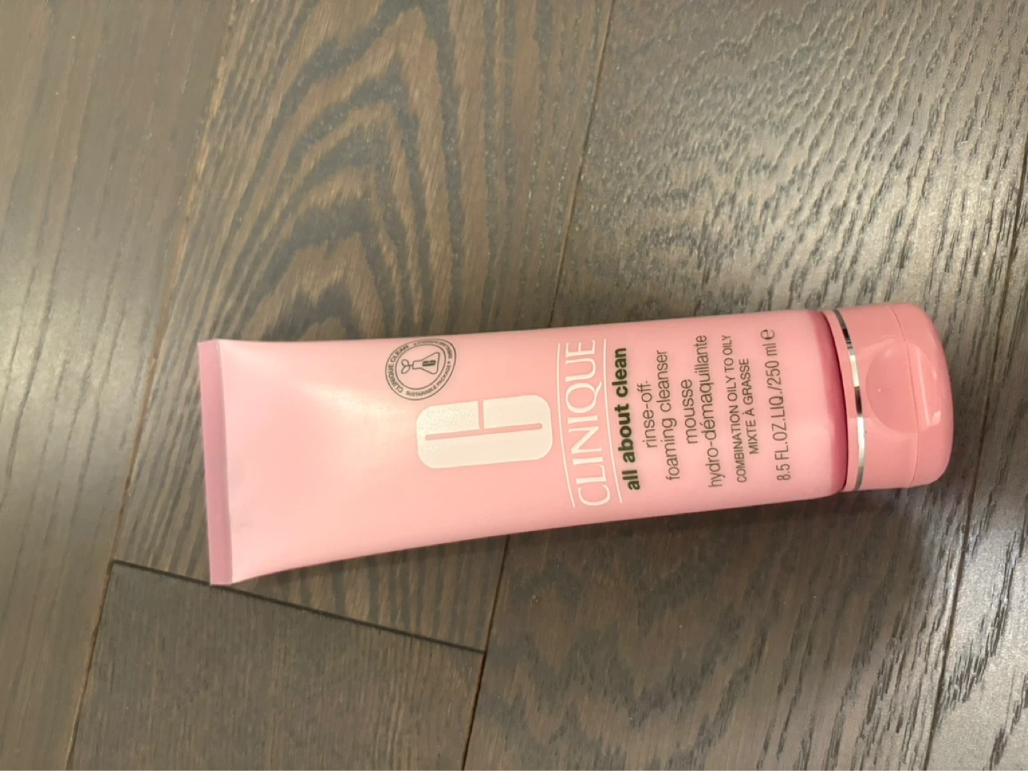 Clinique All About Clean rinse-off foaming cleanser. This formula is suitable for combination to oily skin types. It effectively removes makeup and impurities. 8.5 fl. oz. LIQ./250 ml e.
