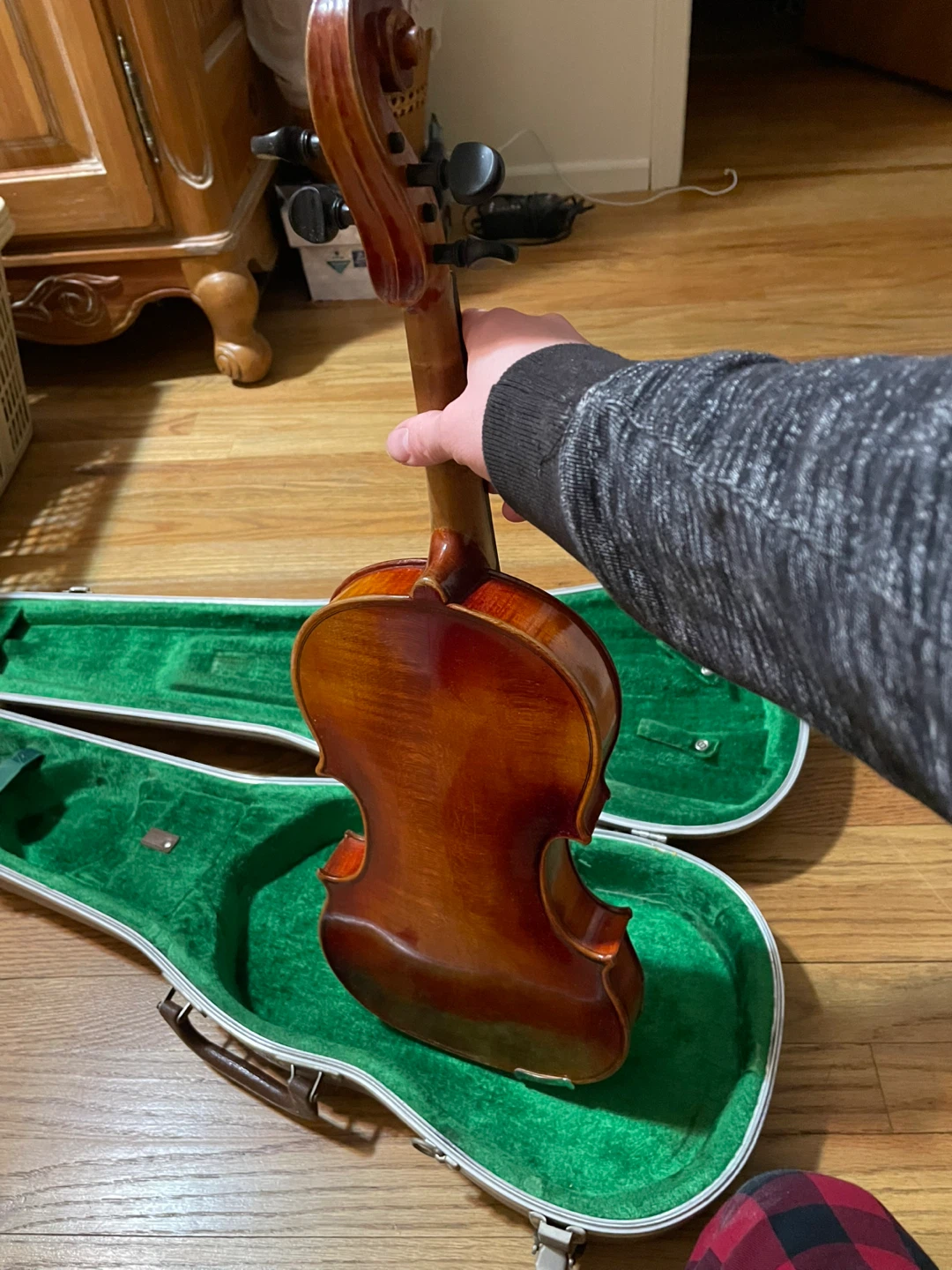 Violin in a brown exterior case with green velvet interior. Includes case and violin. Perfect for beginners or students! Selling as is! Merson brand, made in Germany, Roth case