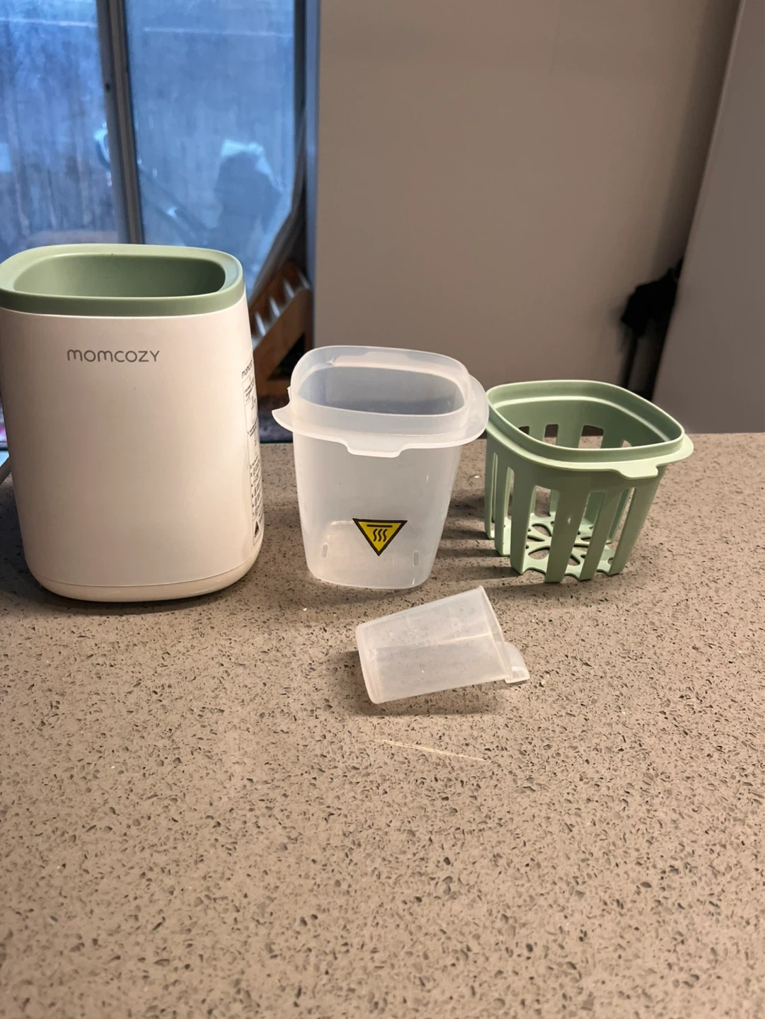 Cover has a chip but works well.Fresh milk heat-up/cold milk heat-up/food heating/steaming/thaw/24hrs keep-warm