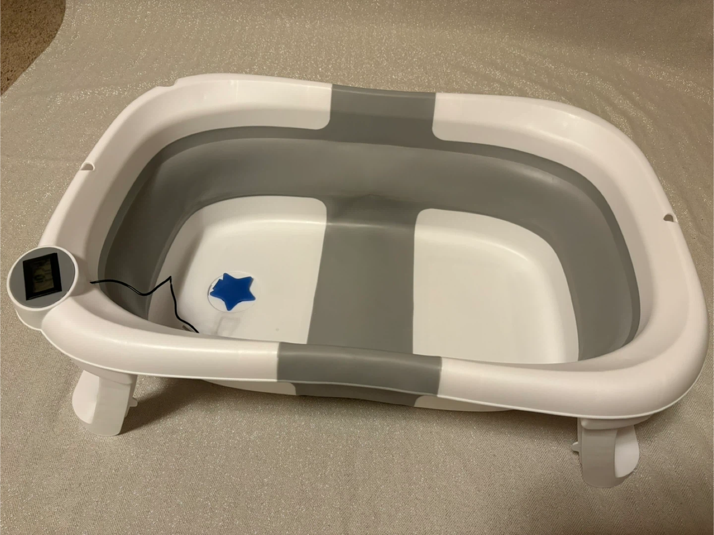 This collapsible baby bathtub is designed for convenience and safety. It features an integrated digital thermometer to ensure the water is the perfect temperature for your little one. Made with durable, baby-safe materials, it folds flat for easy storage. This tub is great for keeping bath time comfortable and stress-free!