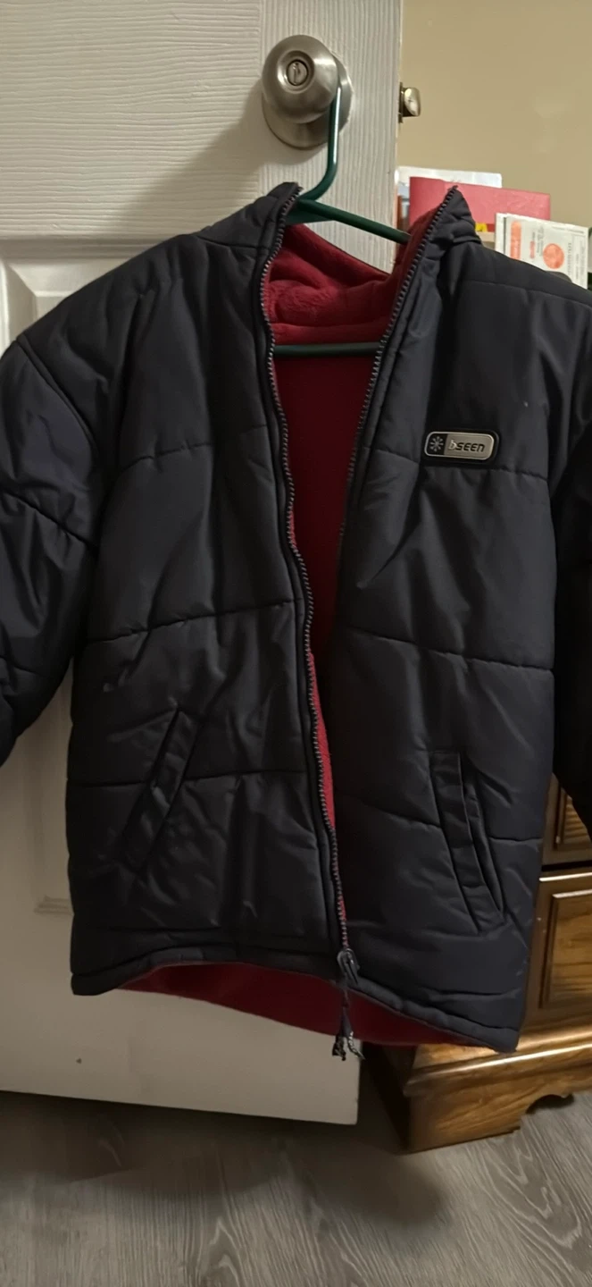 Selling a gently used iXtreme puffer jacket, size 7! It's reversible, with a navy blue exterior and a red interior. Perfect for keeping your little one warm and cozy during the colder months