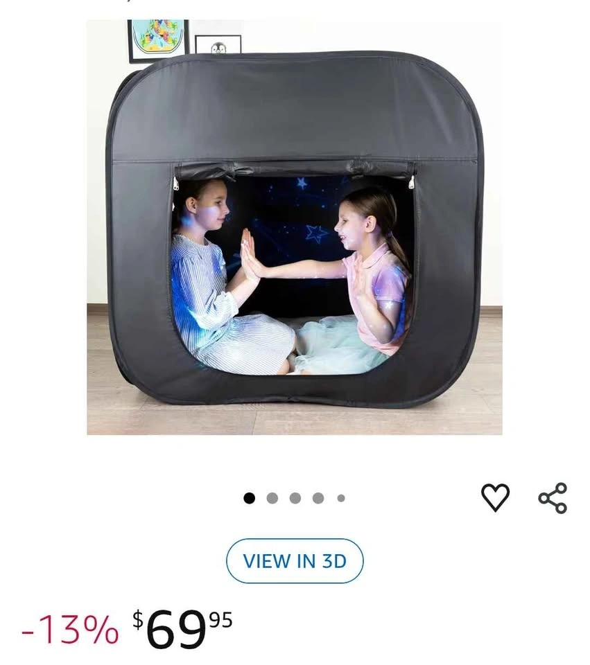 Buy & SellPop-Up Sensory Dark Den TentPop-Up Sensory Dark Den Tent$55Spacious pop-up tent for kids. Great for sensory play or just a quiet dark den. Has side windows for ventilation. Measures 40x40x40 inches.WHERE TO MEETFreshcoView MapSELLERverifiedRicaHampton Heights832 reviews0 chats·0 favorites·10 viewsSEND CHAT TO SELLERHi Rica! I’m interested in your listing.Hi Rica! I’m interested in your listing.Get the Karrot app to chatSign In to chat
