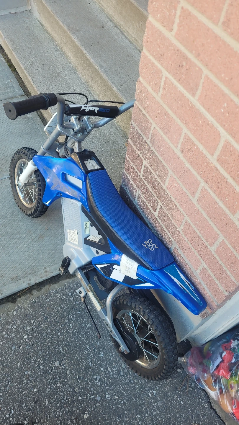 35Selling a blue hyper 350 kids Dirt Rocket electric bike. It's in good condition and ready for some off-road fun! comes with two lead acid batteries.