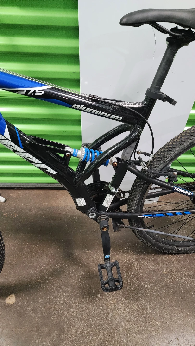 67Selling a Hyper aluminum mountain bike. It's black and blue, and looks to be in good condition. This bike is designed for adults and suitable for people weighing less than 275 lbs