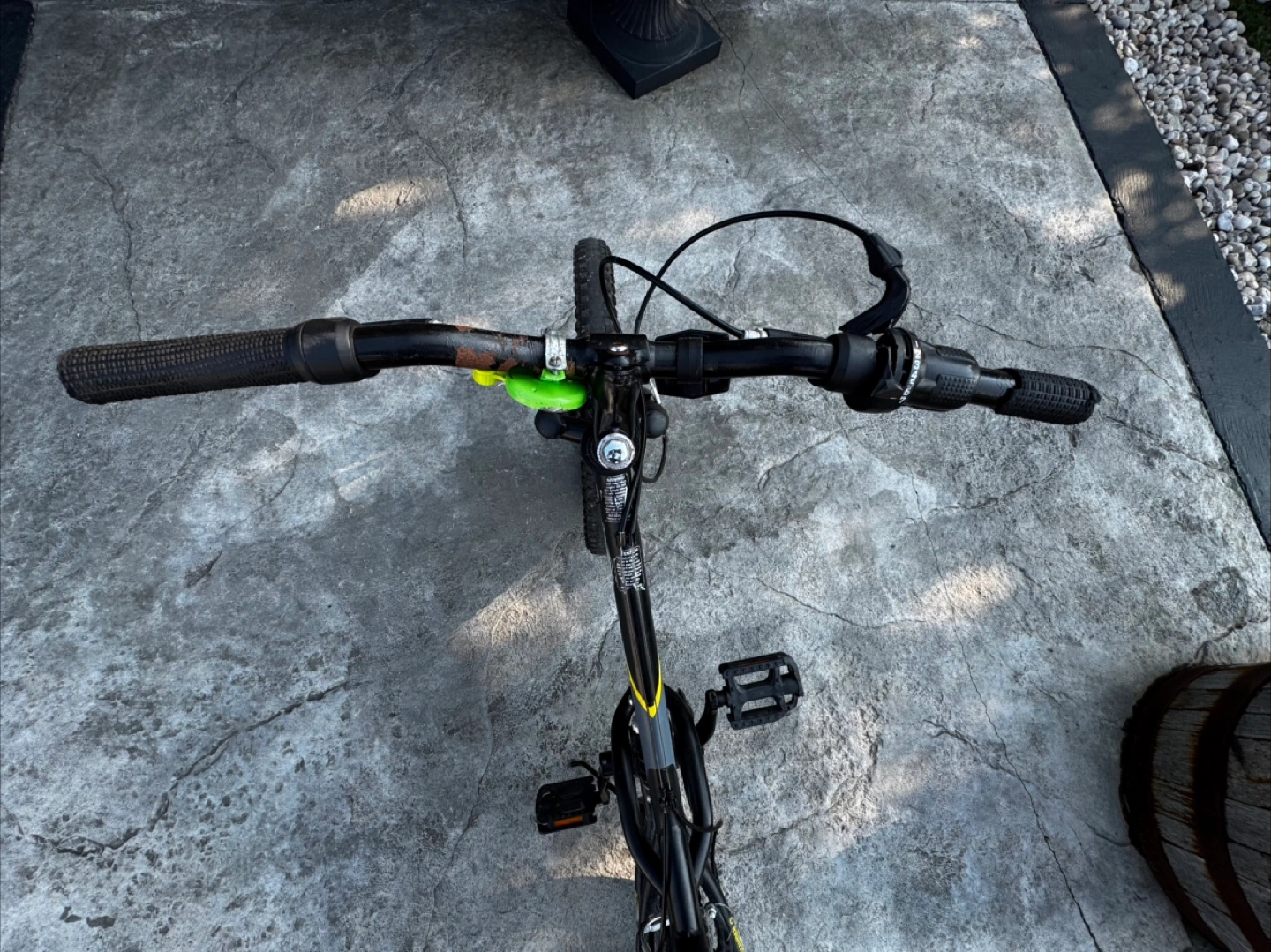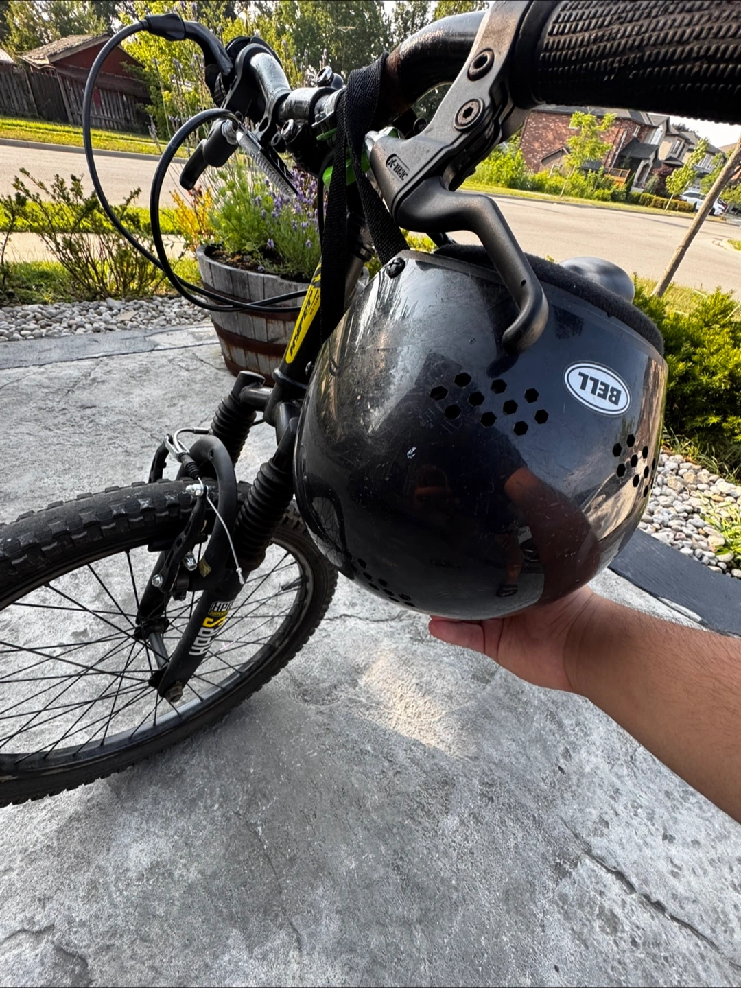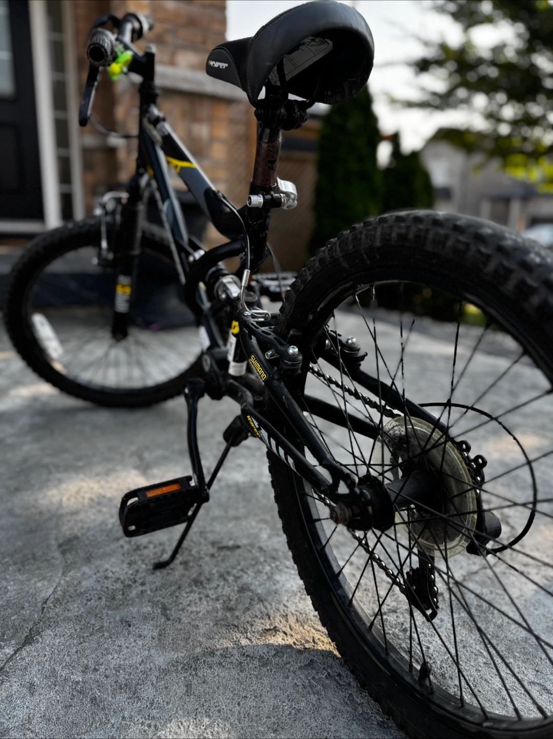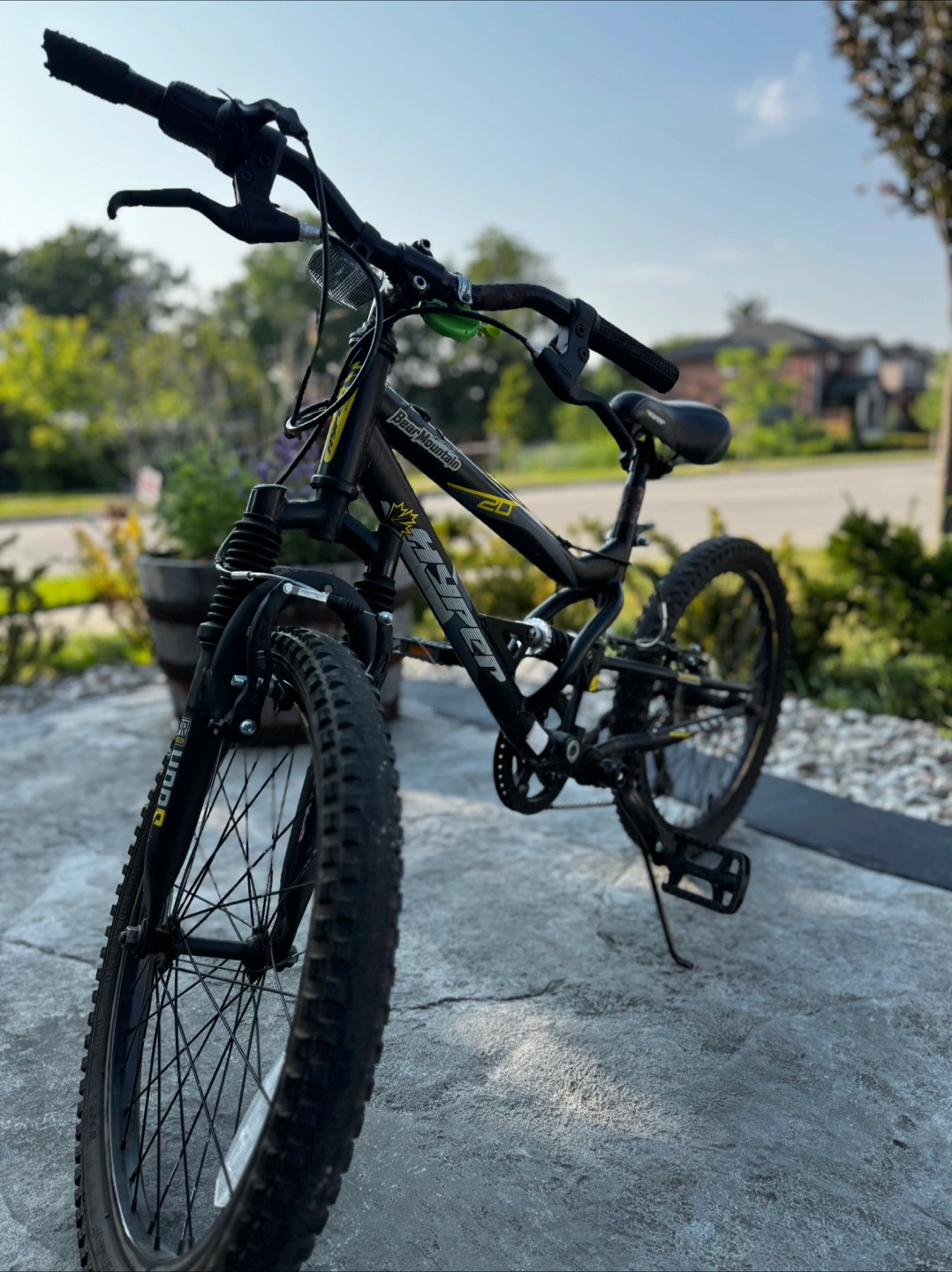 17Hyper mountain bike 20inc+helmet Breaks don’t function well. Gear doesn’t work, Cannot switch Gears. It needs some tuning. Dual suspension. Pickup Hamilton Mountain