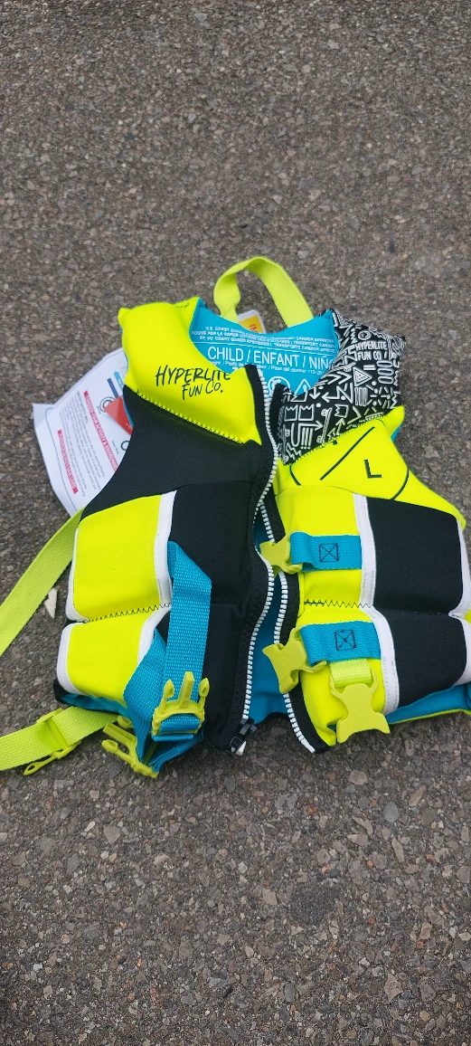 Selling a Hyperlite Fun Co. child's life jacket. It's in great shape and ready for some fun in the water! It fits kids weighing 33-55 lbs (15-25 kg).