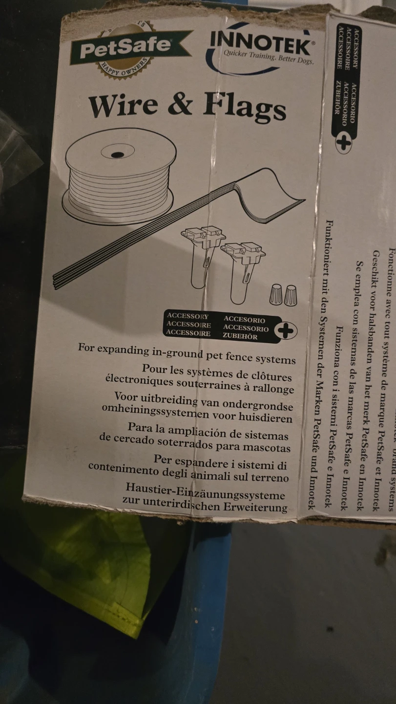 I'm selling a PetSafe Innotek Wire & Flags in good condition. It's for expanding in-ground pet fence systems. Perfect for keeping your furry friends safe and sound!