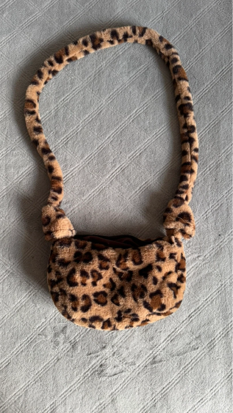 leopard print shoulder bag, super soft, fuzzy and cute