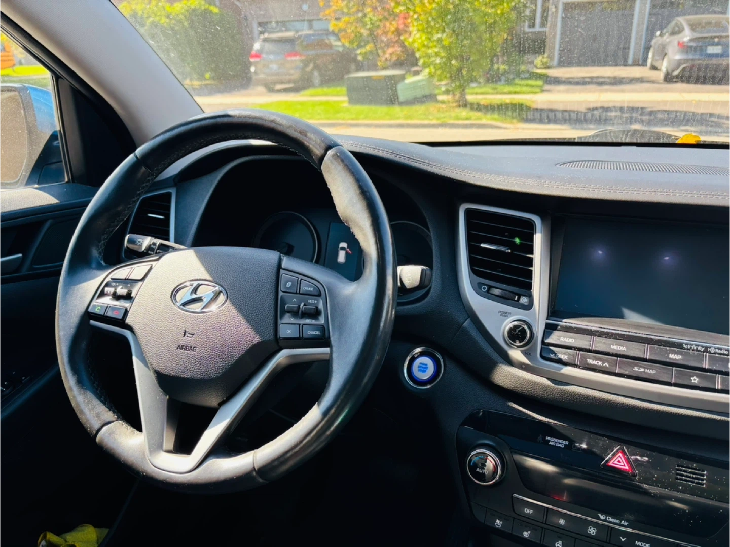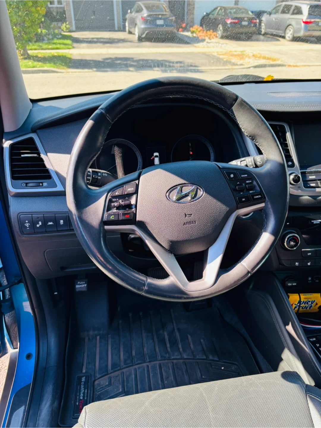 60Hyundai Tucson car Extended warranty from Hyundai till March 2027 The 2018 Hyundai Tucson Ultimate is the top-tier trim level, featuring a 1.6L turbocharged 4-cylinder engine, All-Wheel Drive (AWD), and a 7-speed dual-clutch automatic transmission. It includes luxury features like leather seating, heated and ventilated front seats, a heated steering wheel, a panoramic sunroof, and a premium Infinity audio system, along with an 8-inch touchscreen with navigation and smartphone integration. Beautiful blue Tucson finish and a spotless service history. Fully loaded with top features including a near-panoramic sunroof, 5-inch colour touchscreen with Bluetooth, rearview camera, heated seats, 60/40 split-folding rear seats, and a dual-level cargo floor. Powered by a 2.0 L 4-cylinder engine with a smooth 6-speed automatic. Super clean, well-equipped SUV ready for its next adventure.