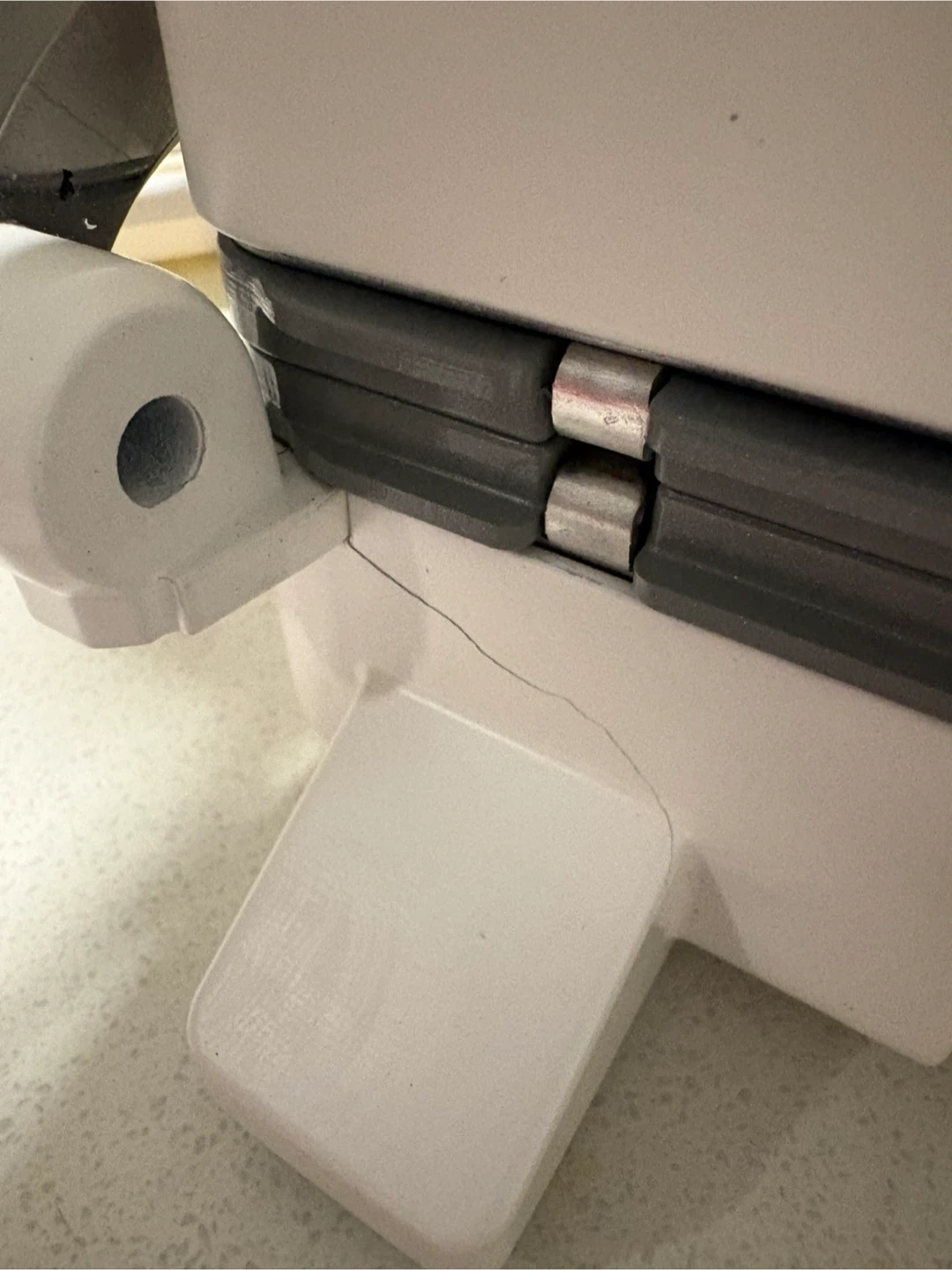 There is a small crack on the rear hinge plastic (shown in photos). It does not affect functionality — cosmetic only.
