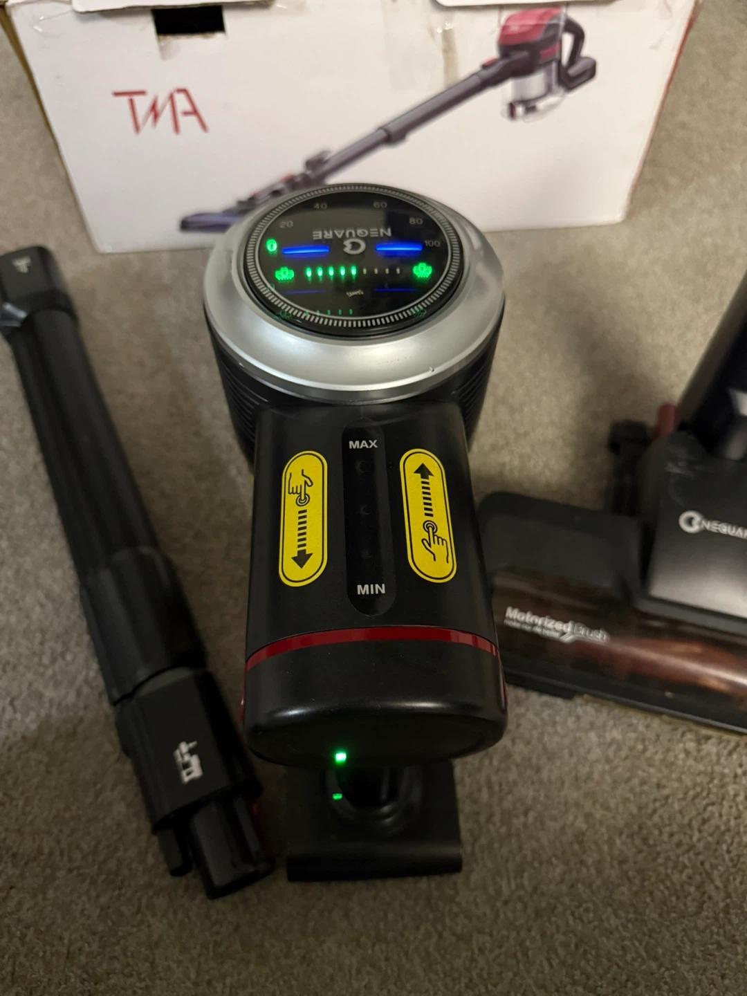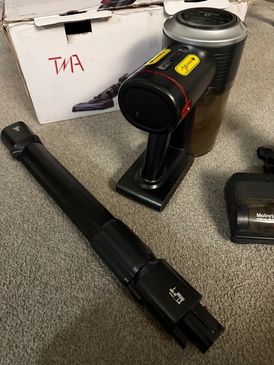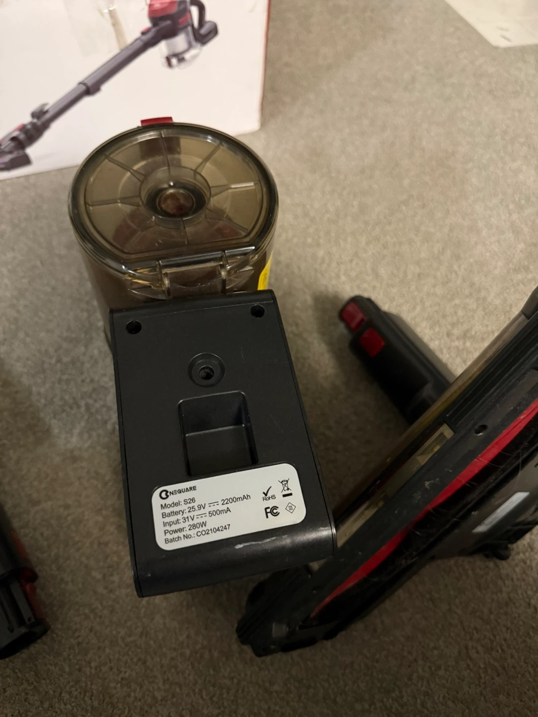 Description: Very Clean Nequare S26 cordless stick vac only used a handful of times, needs a battery charger and may need a battery!