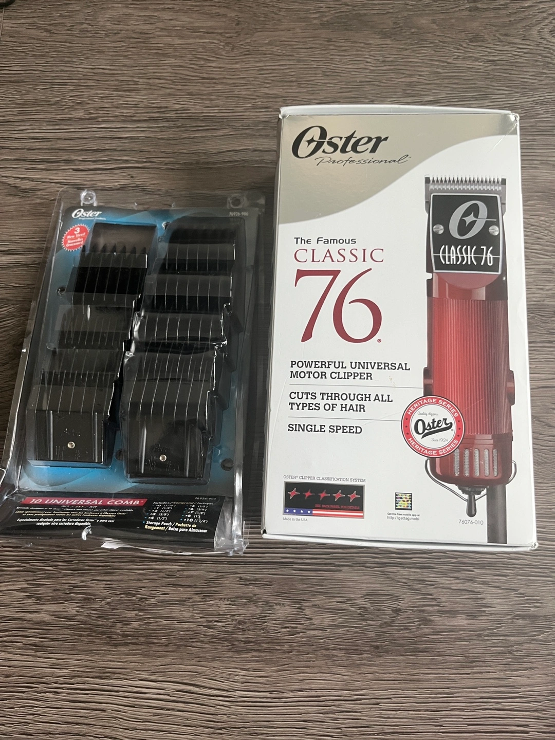Selling a clipper and comb set. One package contains a set of combs. The other package contains a clipper. It is perfect for some self-care at home.
