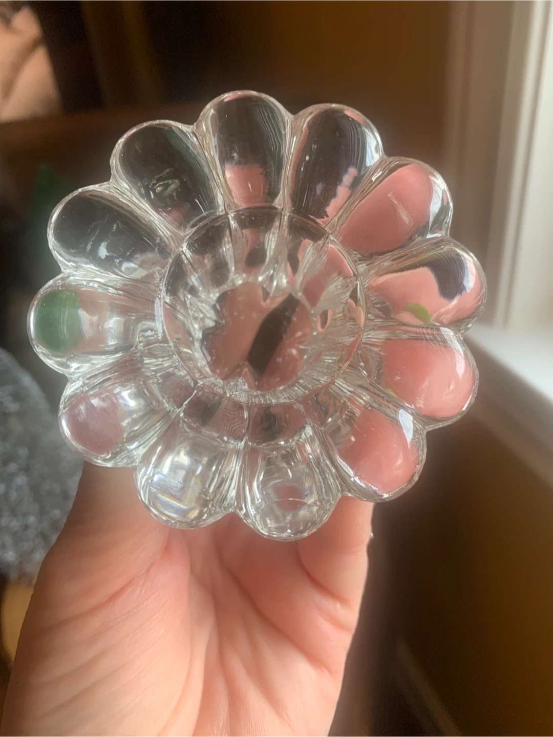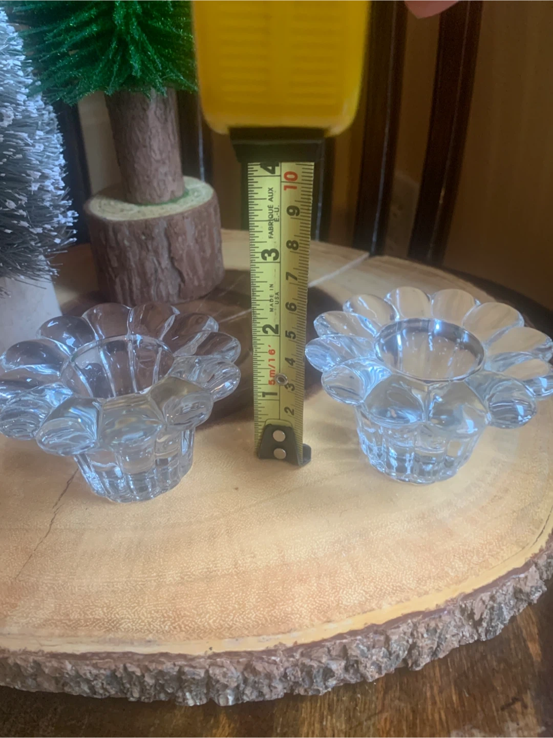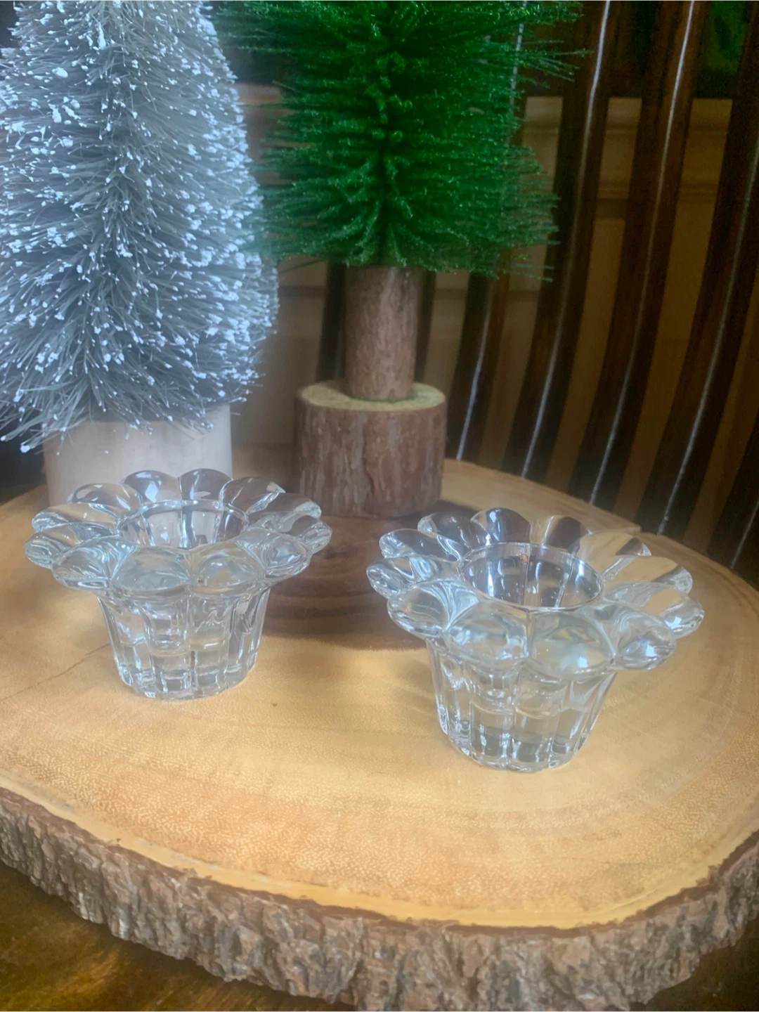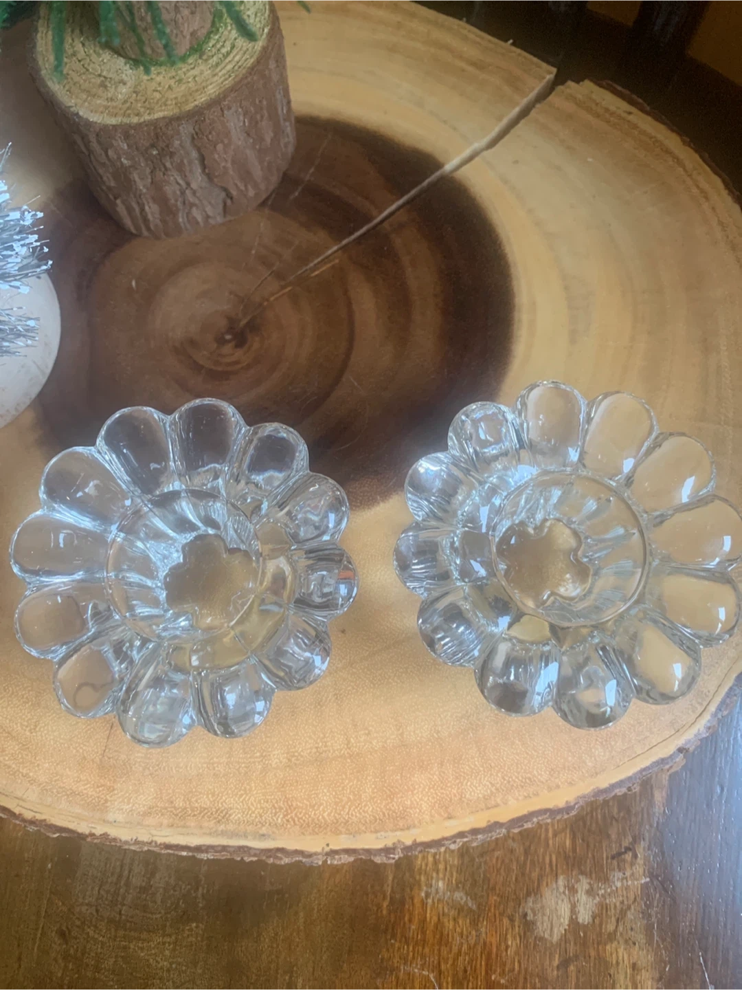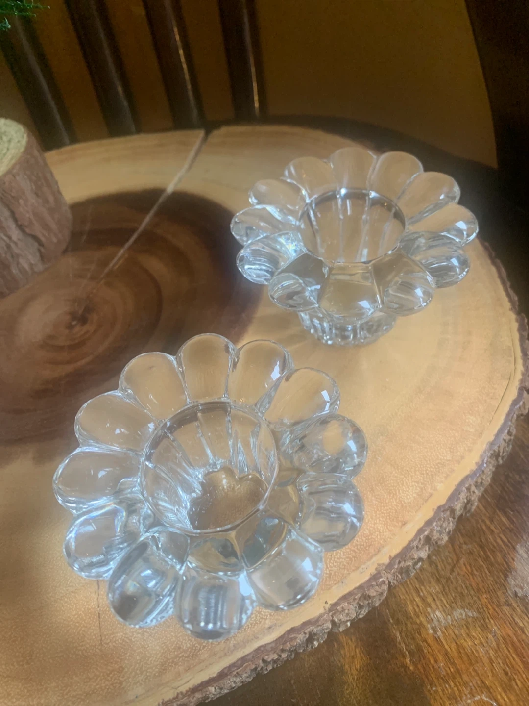 Vintage Clear Glass Flower Candle Holders (Set of 2)
