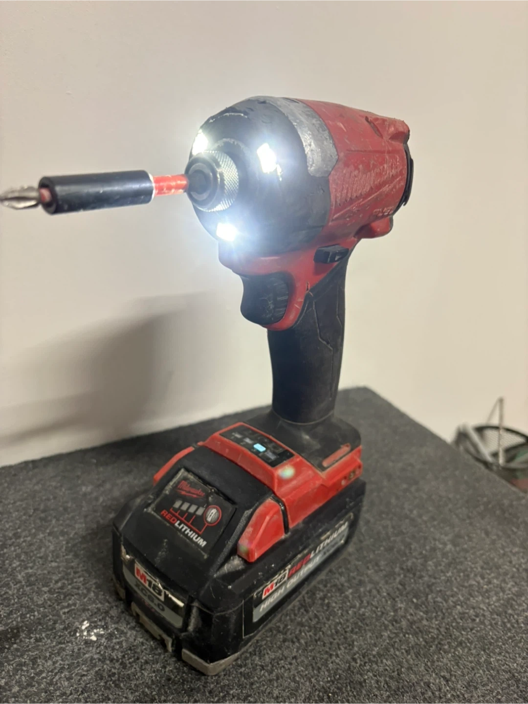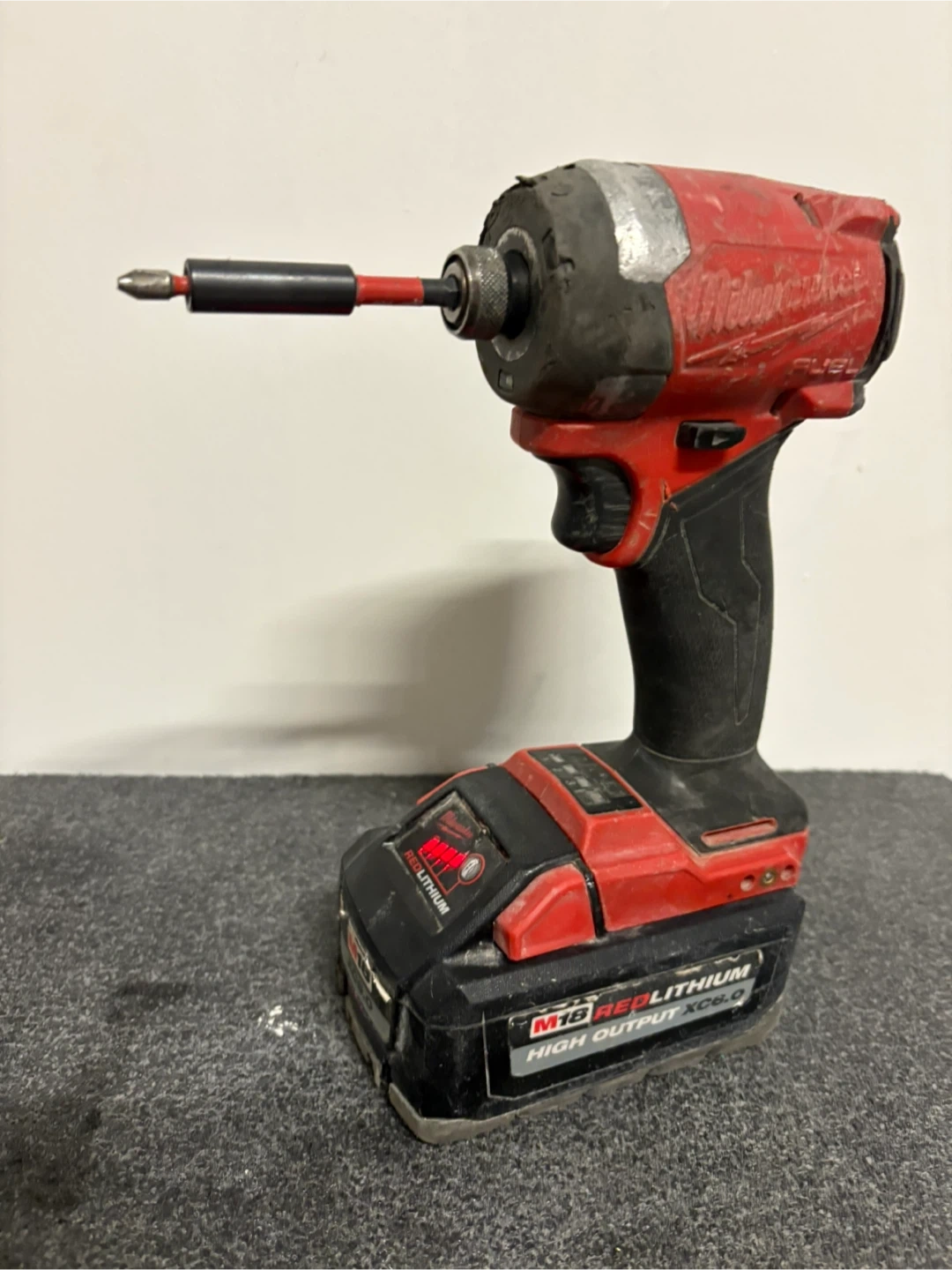 This is a Milwaukee M18 FUEL impact wrench with a high output XC6.0 battery. It's designed for heavy-duty use. Includes a screwdriver bit.