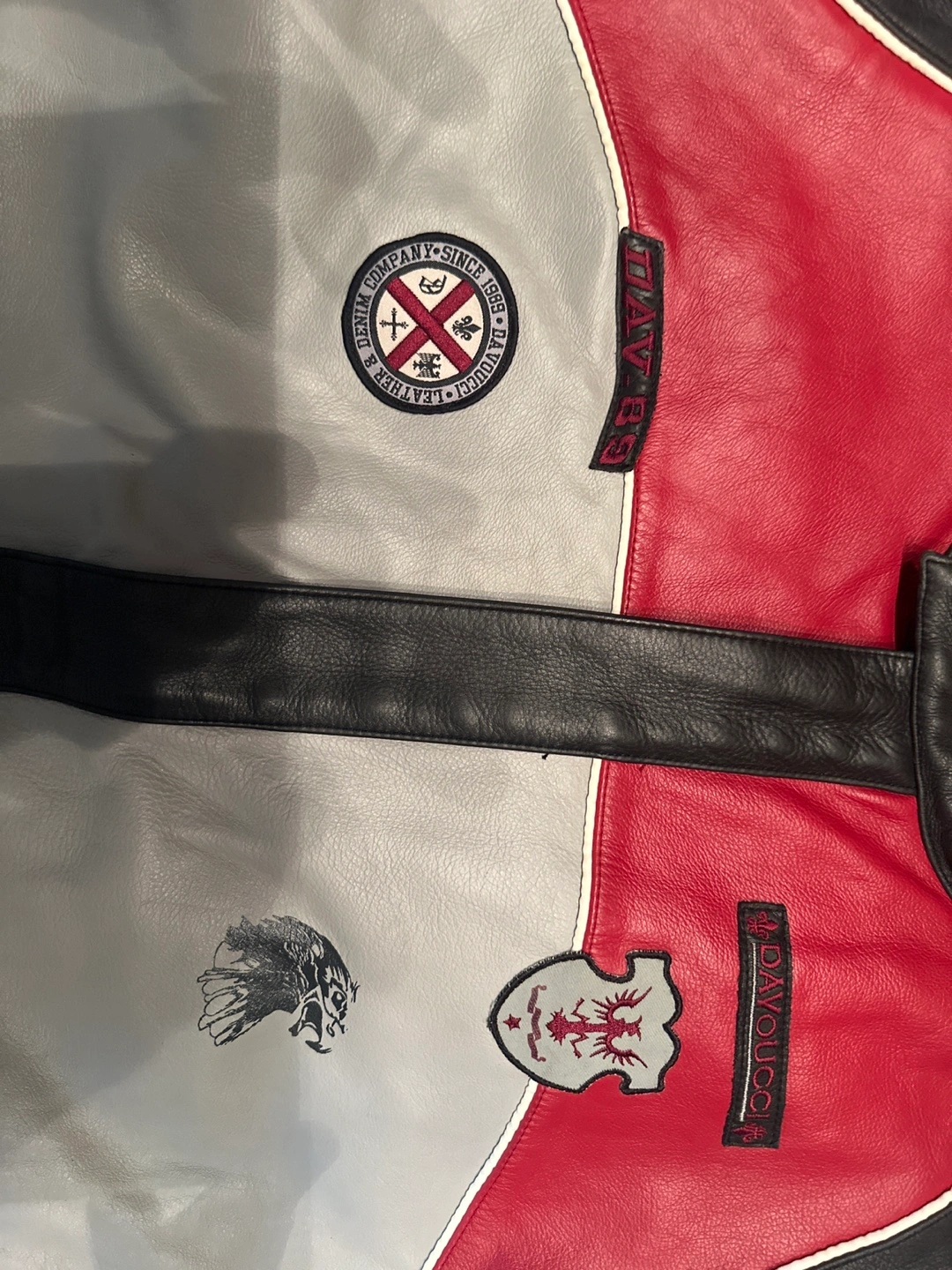Davoucci Men's Leather Motorcycle Jacket - Red, Black, Grey