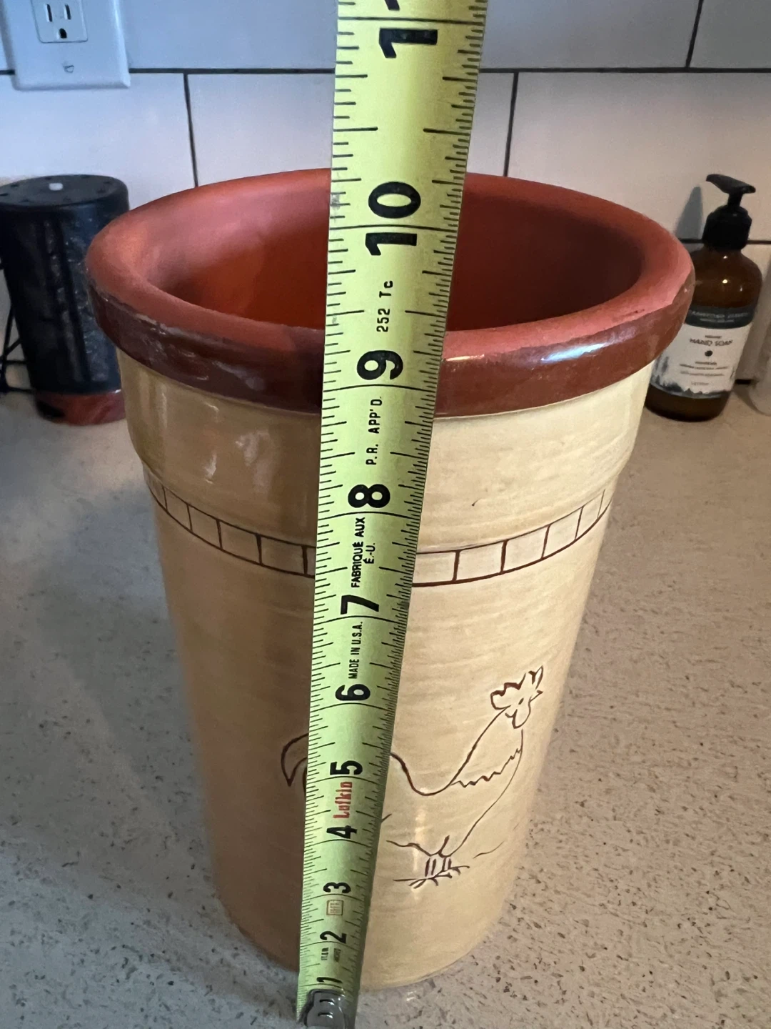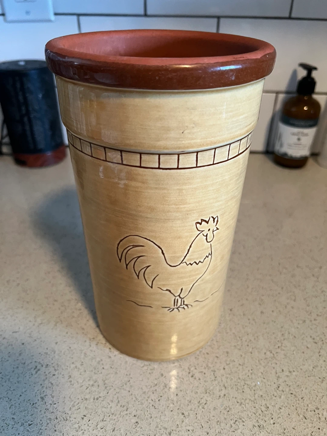 A glazed terracotta wine cooler featuring a charming rooster design.