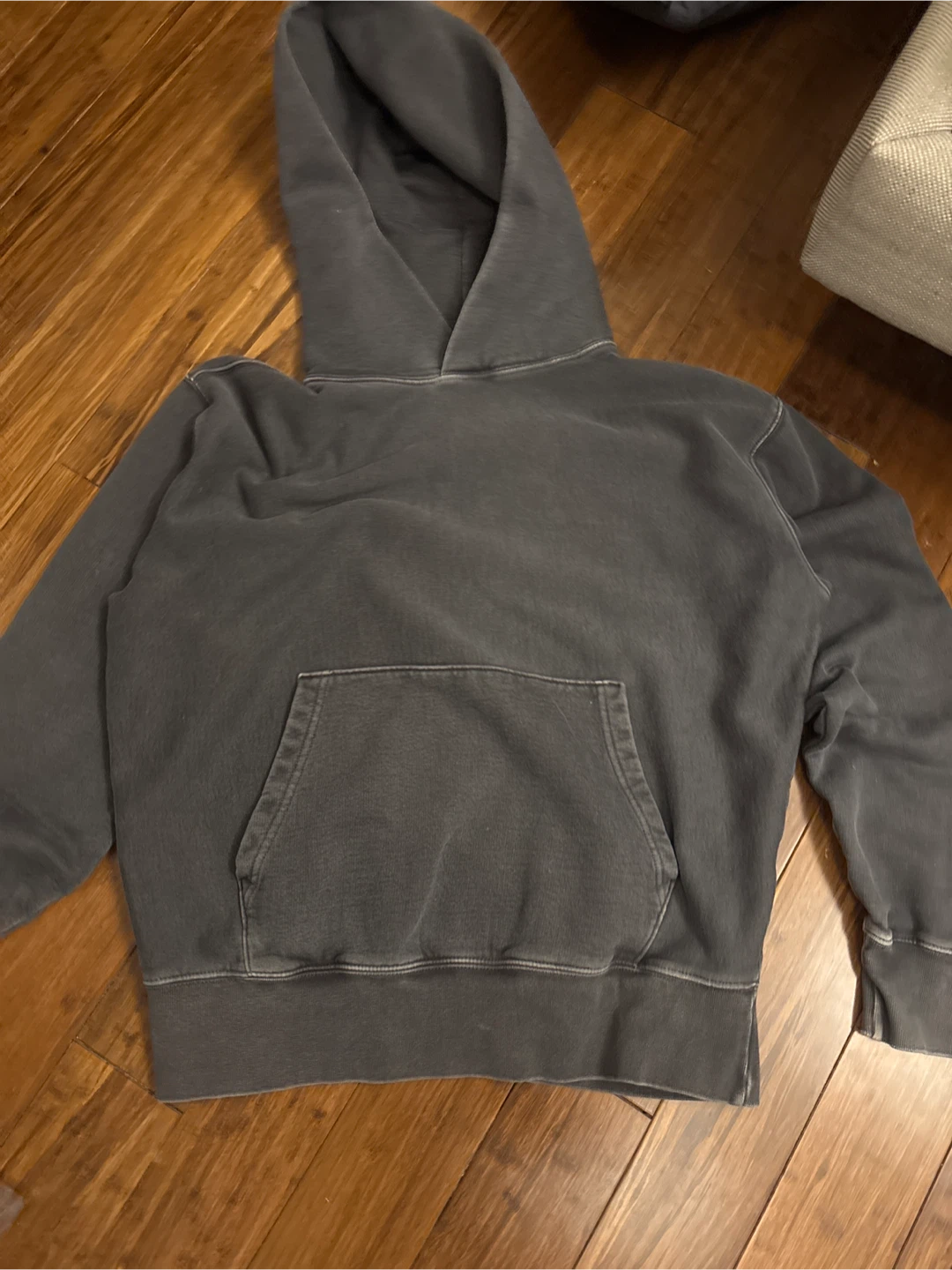 Selling a comfy grey hoodie! It's in good condition and has a classic look with a hood and front pocket. Perfect for layering or just lounging around. Boxy fit perfect for winter