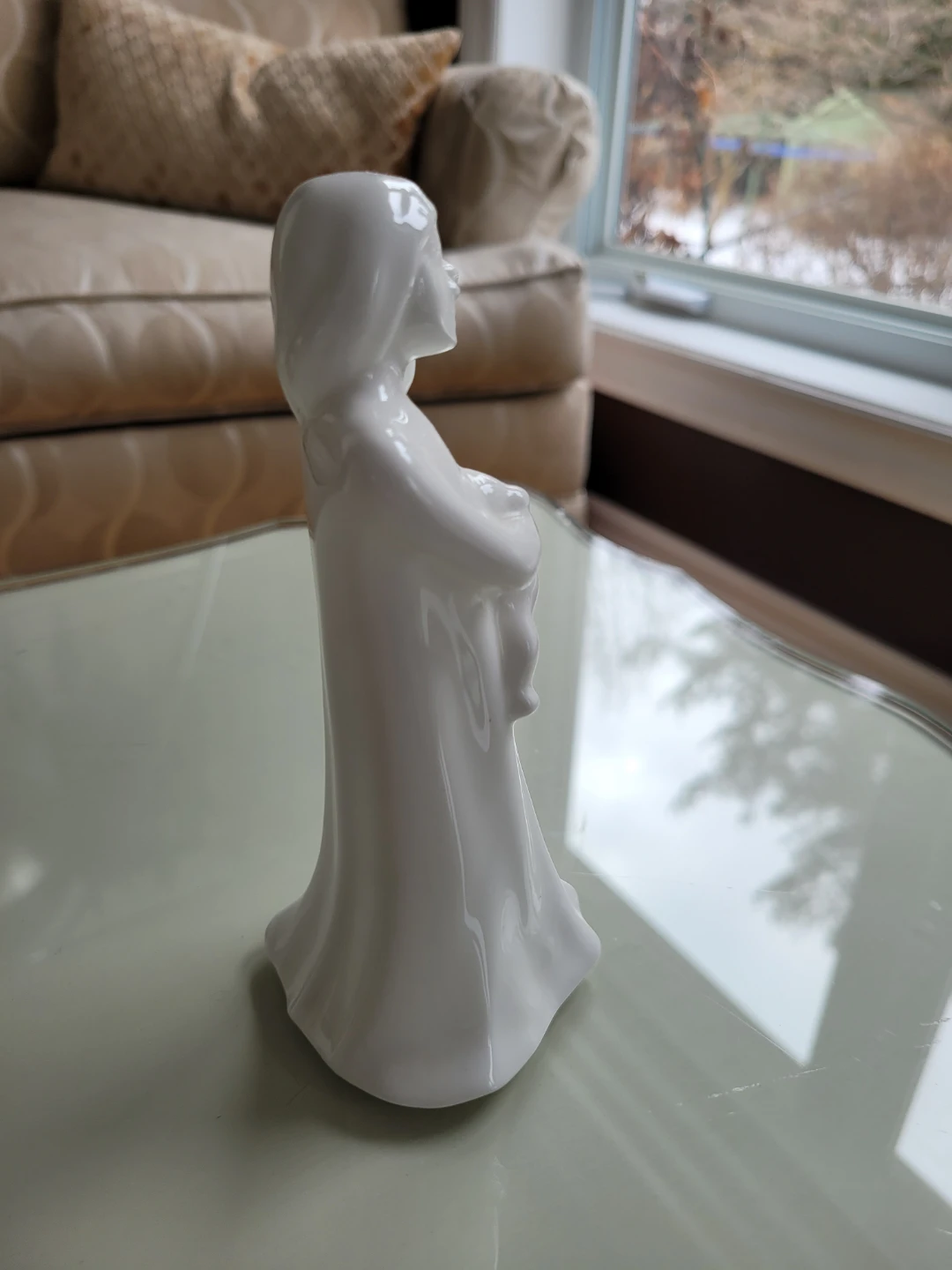 A beautiful Royal Doulton white ceramic figurine of a young girl holding a teddy. Titled: 'Sleepyhead'.