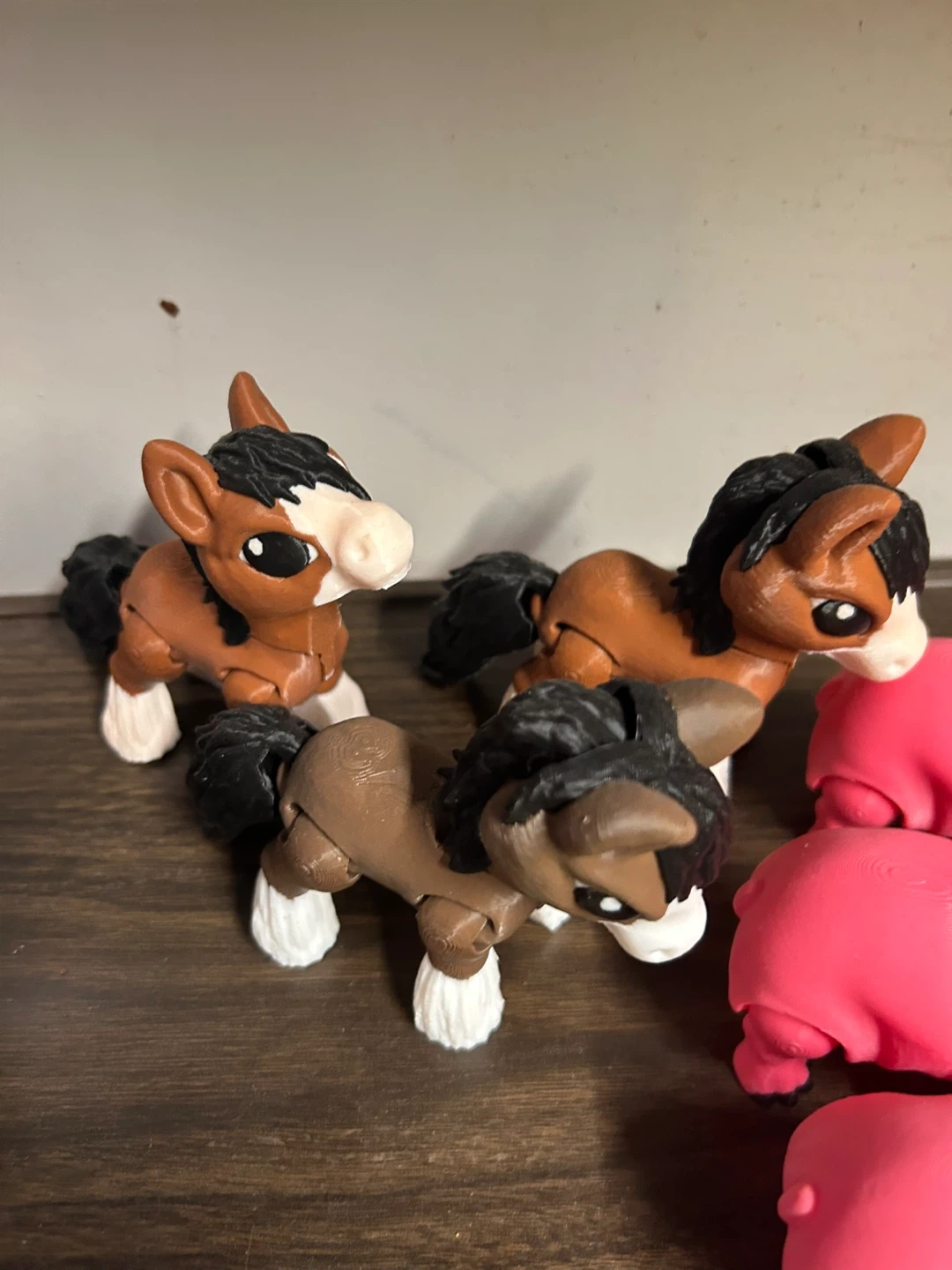 This is a collection of 3D printed figurines, including French Bulldogs, crabs in hats, deer with flowers, horses, and dachshunds. They're perfect for display or as unique decorative pieces.