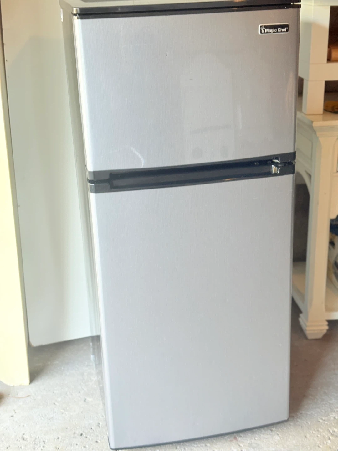 (It does not work but I think its fixable if you can grab it )Selling a Magic Chef mini fridge in silver. It's a great size for a dorm room, office, or small apartment.