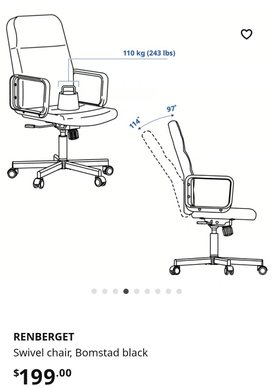 Selling a gently like new IKEA Renberget office chair in black .I bought it from IKEA and used sometimes and there is no space for it in my home.