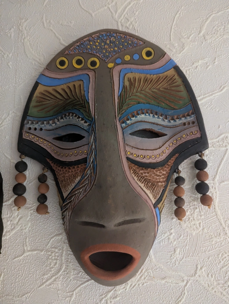 Traditional Cuban terracotta mask, crafted from clay, are some of Cuba's most iconic artisanal products, measuring 12 by 9 inches.