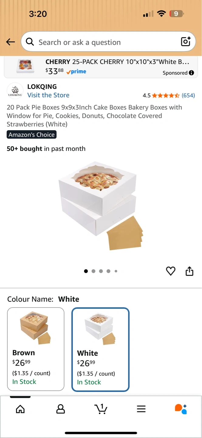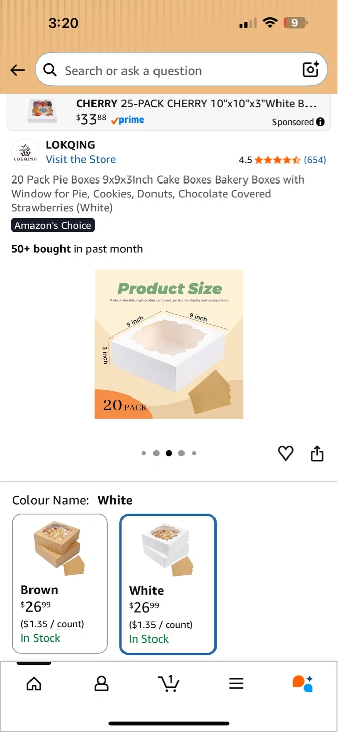 LOKQING 20 Pack White 9x9x3 Inch Bakery Boxes