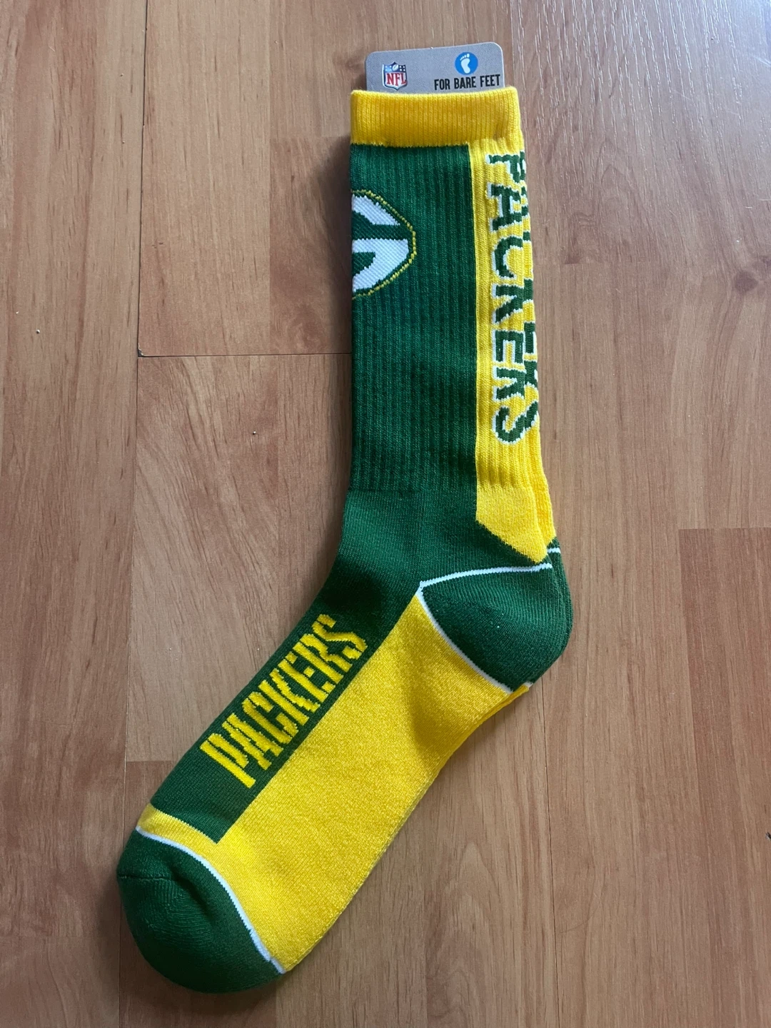 For Bare Feet Green Bay Packers Crew Socks Large
