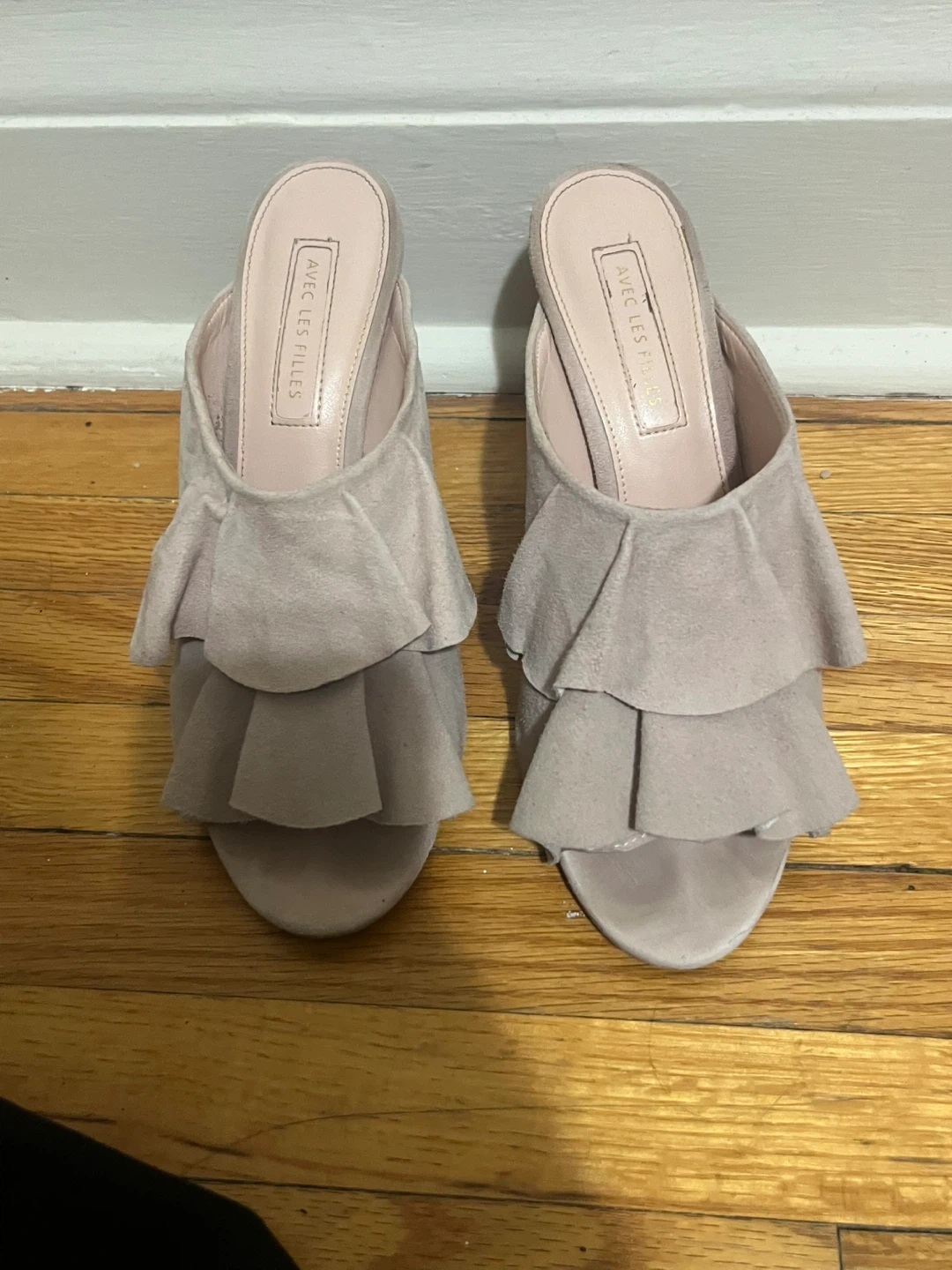 Selling a pair of Avec Les Filles Joyce Azria heels in size 7.5M. These stylish heels feature a unique ruffled design and are perfect for adding a touch of elegance to any outfit. They are in good condition and ready for a new home!