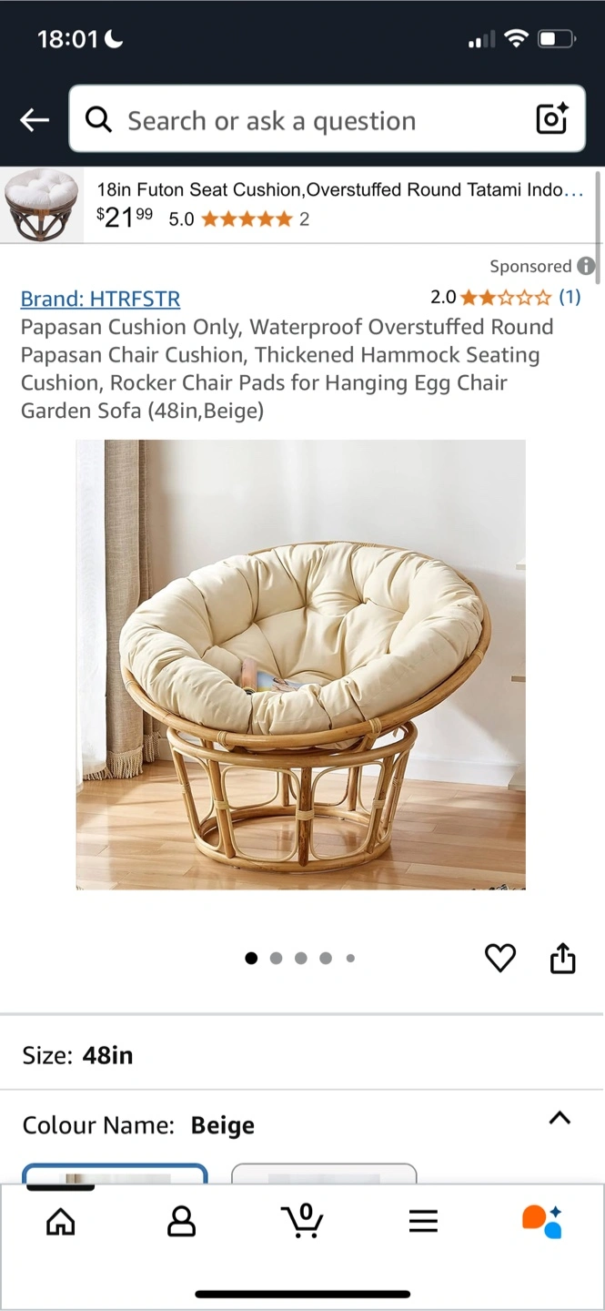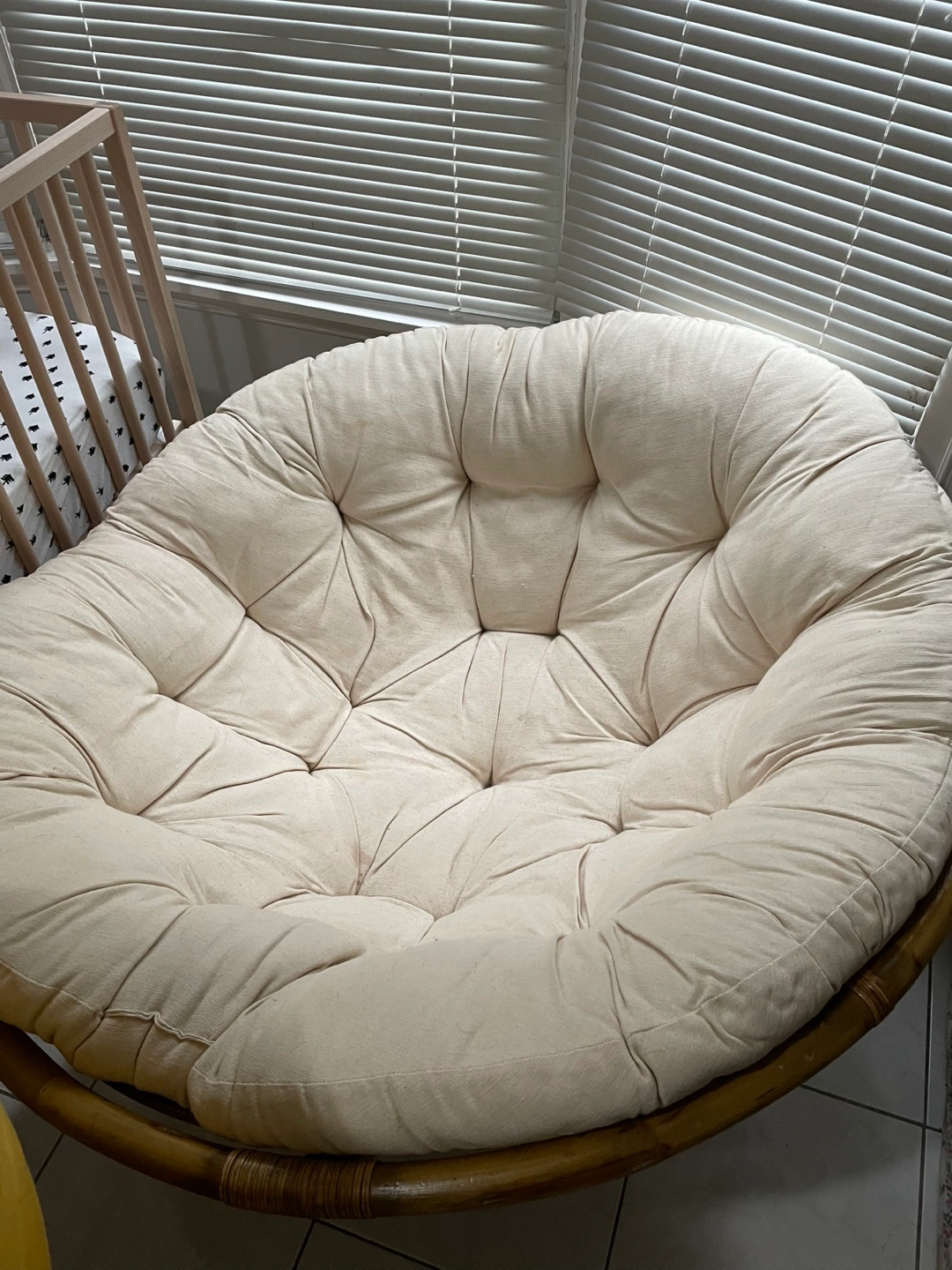Buy & SellPapasan Chair with CushionPapasan Chair with Cushion$80Round rattan papasan chair. Includes a cushion and a purple cover. Great for relaxing.ConditionLike newDimensions60 cm / 48 inWHERE TO MEETCheck LocationView MapSELLERTutuThornhill S877 reviews1 chats·1 favorites·51 viewsSEND CHAT TO SELLERHi Tutu! I’m interested in your listing.Hi Tutu! I’m interested in your listing.Get the Karrot app to chatSign In to chat