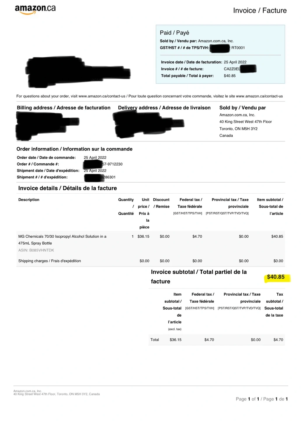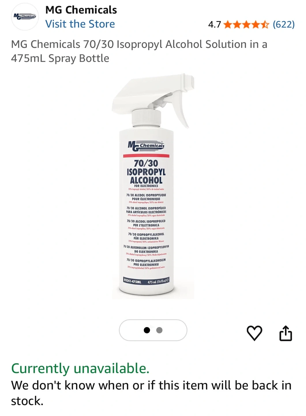 This is a 475ml spray bottle of 70/30 Isopropyl Alcohol for electronics. It's formulated to safely remove oils, dirt, and greases from electronic devices. The moderate evaporation rate provides a light alcohol odour. It’s either never used or used 1-2 test sprays only (can’t remember). The bottle is still full. Bought from Amazon for $40.85.