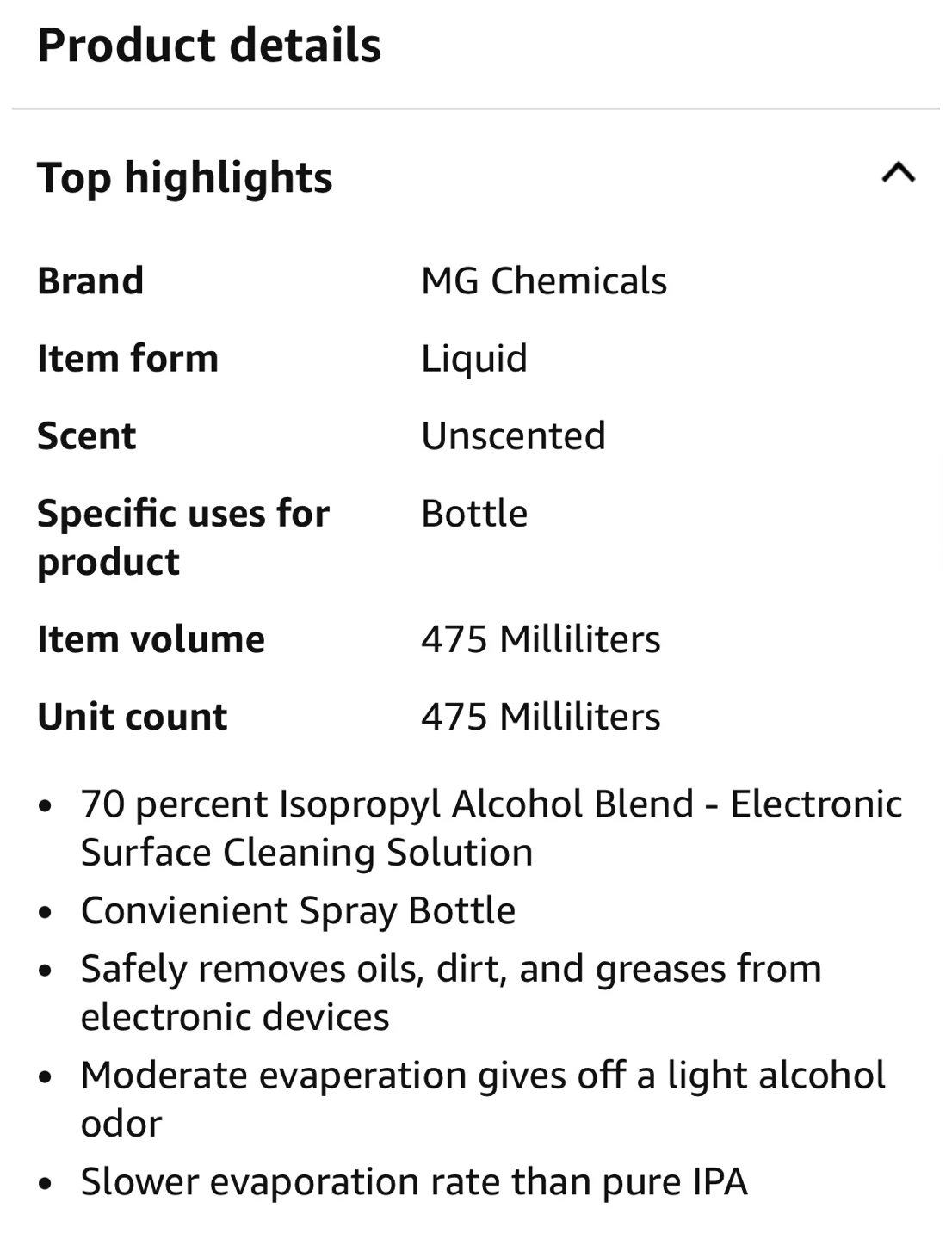 This is a 475ml spray bottle of 70/30 Isopropyl Alcohol for electronics. It's formulated to safely remove oils, dirt, and greases from electronic devices. The moderate evaporation rate provides a light alcohol odour. It’s either never used or used 1-2 test sprays only (can’t remember). The bottle is still full. Bought from Amazon for $40.85.